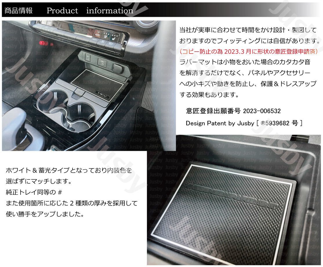 | 2023発売 60系 プリウス専用専用 インテリアラバーマットセットです。 2023年1月発売の60系プリウスMXWH60/61/65 ZVW60,65 専用設計のインテリアラバーマットです。 全19枚セットで内装ポケット部に装着可能です。 グレードで内装&商品内容が異なります。 必ず商品タイトルで、お客様の車両グレード(Z PHEV/Z HEV/G HEV))と希望色(白・蓄光 or マチュアレッド or ブルー)をご確認の上 ご注文をお願い致します。 落札後の変更は出来ません。 タイトル以外の色・グレードはこちらから選択してください。 U&Xグレードは一部未適合となりますので画像適合をご確認ください。車種専用の取付説明書とJusby専用の製品保証書が必ず付属いたします。 純正ドアポケット等はプラスチック部となっており爪や小物などで傷つき易いため当Jusby製マットでパネル保護&異音防止で質感アップ・ドレスアップできおすすめです。 今まで直接置いていた小物やスマートフォン等が当マットで保護でき、缶ジュース等、走行時の振動によるカタカタ音等防止やパネルの傷防止にもなります。 完全オリジナル設計で時間をかけCADにて製図して製作しておりますのでフィッティングには自信があります。 ホワイトラインはどの内装にもマッチしまます。蓄光となっており蓄光した箇所が暗いところに入った際等は発光します。(夕方や夜間は基本光りません) 1年間は不具合・不適合・初期不良に対しての製品保証を行いますので安心してお買い求めください。 またPL保険(製造物賠償責任保険)付きですので末永く安心してご使用いただけます。(日本国内のみ適用) ( ・∀・)Φスタッフレビュー 専用設計なのでフィッティングがとにかく良く純正の様に見えます。 携帯電話等車で充電しながらそのままパネルに置いていた部分にもラバーマットで保護できる為、携帯電話及び車両パネルにも優しく満足度が高い逸品です。 お車が綺麗なうちの装着がおすすめです。 Jusby設計・開発のオリジナル商品です。デッドコピー防止の為、意匠登録申請済みです。(特許庁HPにてご確認ください) デッドコピーには「業者」及びコピー目的での購入者「個人」へ請求させていただきます。(Design Patent by Jusby [ 5939682 号] Jusby.,co.ltd) |