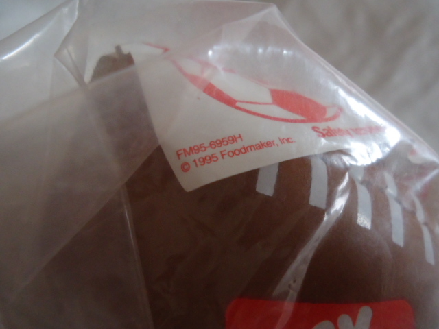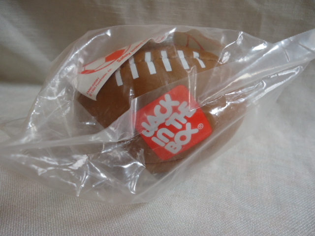 米国にて、個人の方より、購入しました。1995年製。米国ジャックインザボックスで、出たミールトイの4点セットの1点新品未開封物です。スポンジ製。サイズは、長さ約9センチ・高さ約5.5センチです。24時間以内に、お手続き入力後、期限内にかんたん決済、出来る方のみ、ご入札をお願い致します。この商品は、1点物です。 2601