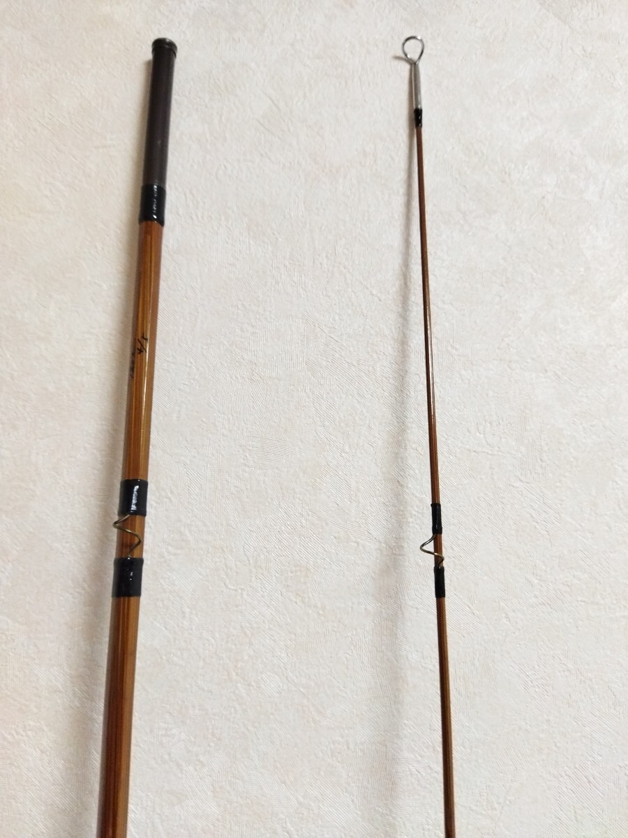 ※必ず出品者の自己紹介欄、商品説明文、発送方法、お取引の注意、送料一覧表等の全てを契約としてご確認、ご了承の上お取引お願いします。 バンブーフライロッド。Imagination Ken Takahashi K.tanaka 4番、5番ライン用で 繋いだ全長は約238cmくらいあります。アルミケース、竿袋付属。多少の使用感はありますが全体的に綺麗な状態でガイド、ガイドスレッドの状態も良く、バンブーロッドによくある反りも現時点で特に感じません(保管は気を使っていますが落札されるまでの期間でわずかな変化はご容赦ください)。かなり古い物ですが全体的に良好でおすすめです。 お取引について ■商品の保管と発送を依頼している倉庫の都合で特殊な梱包になる大型商品(釣竿、大型レンズ等)については到着の日時や曜日を指定して発送ができなくなりましたのでご了承ください。小型商品(釣りのリール、カメラ)などは無理の無い範囲で日時指定を承りますので入札前にご相談ください。 ■2022年7月~落札後のお取引情報送信で出品者、落札者の電話番号が表示されない仕様になりましたが輸送の遅延や万一の輸送事故などの場合に運送会社が落札者様と連絡を取ることもできませんので落札後にメッセージ欄で、お電話番号をお知らせください。こちらも電話番号を発送伝票に記載しますのでご協力ください。(※個人情報保護などで当方のお電話番号を先にお知らせしても当方に電話番号を伝えたく無い方はその旨を入札前にお知らせください) ■落札後にお電話番号連絡にご協力いただけない方は輸送事故や、輸送遅延などのについて一切のサポートは無しとさせていただきますがご了承ください。また、記載のお取引条件やこちらからの返信をお願いするメッセージを最後まで無視される方が時々いらっしゃいますが、そのような方はお互いお取引スタイルが合わないと思いますので、お取引終了後に今後のお互いのオークションに限って参加できないよう設定させていただく場合がございます。 ■何か気になる点などございましたら入札前にご質問いただき、商品のほとんどは未使用保管品や中古品ですので落札後はノークレーム、ノーリターンでお取引くださる方のみ入札をお願いします。細部まで神経質に気になる方は避けてください。 | |||