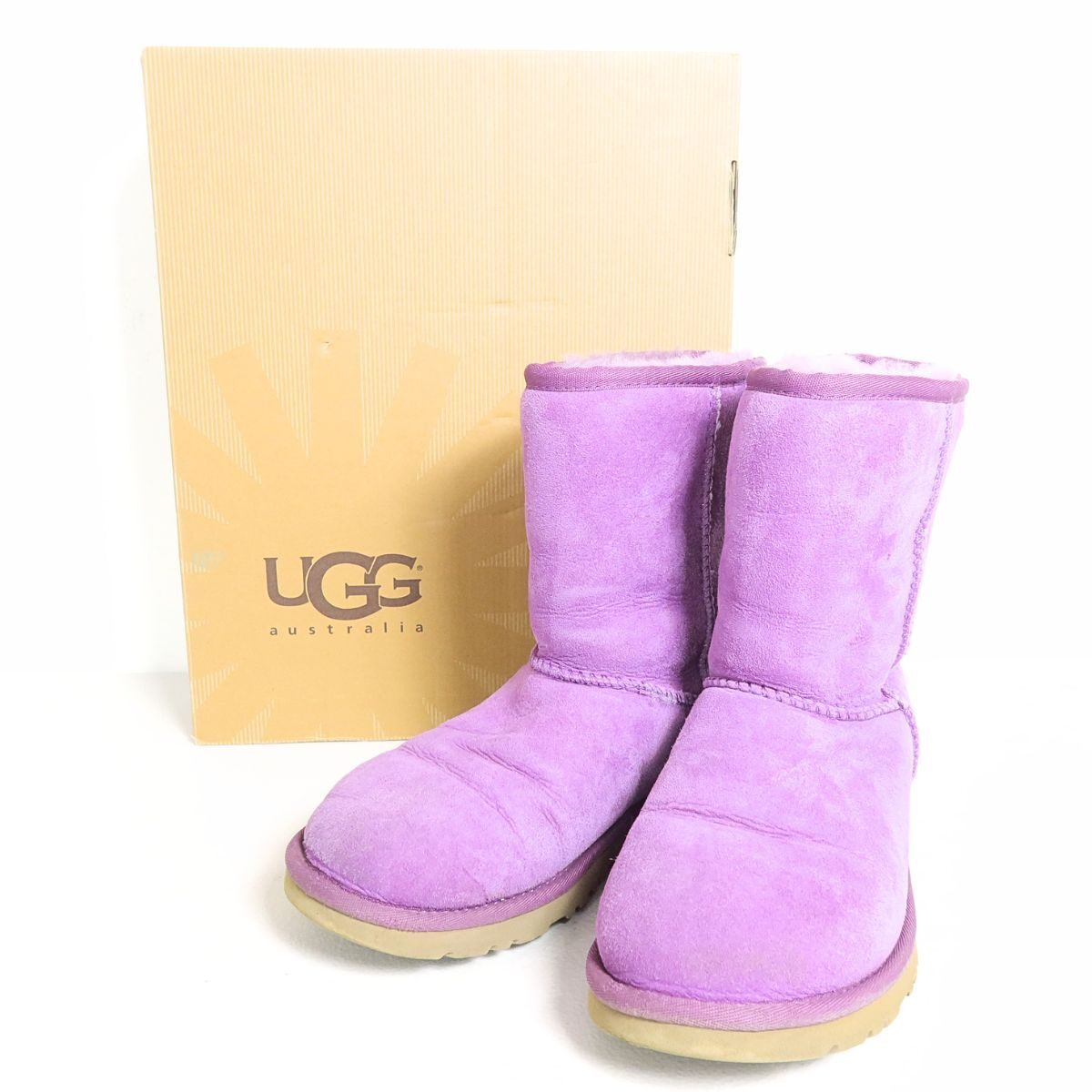 | 商品説明 | 【実寸約】高さ18.5ヒール高2 【サイズ表記】22 【状態】普通の使用感あるお品物 ヒール底にスレ、全体にしわ感など数回~の使用感が見受けられますが 全体的に状態は良好です 【デザイン】紫系 気持ちがあがる明るいお色味に ムートンブーツ特有のふっくらとした丸いフォルムが 足元に柔らかく可愛らしい印象を与えます。 可愛く暖かく冬を過ごせるステキなブーツです。 |