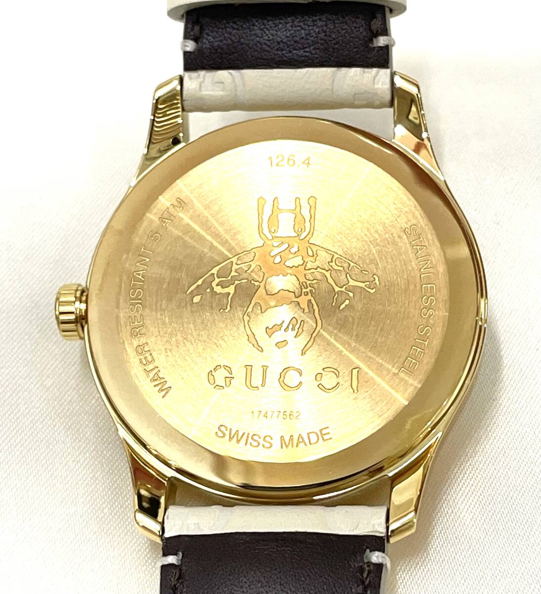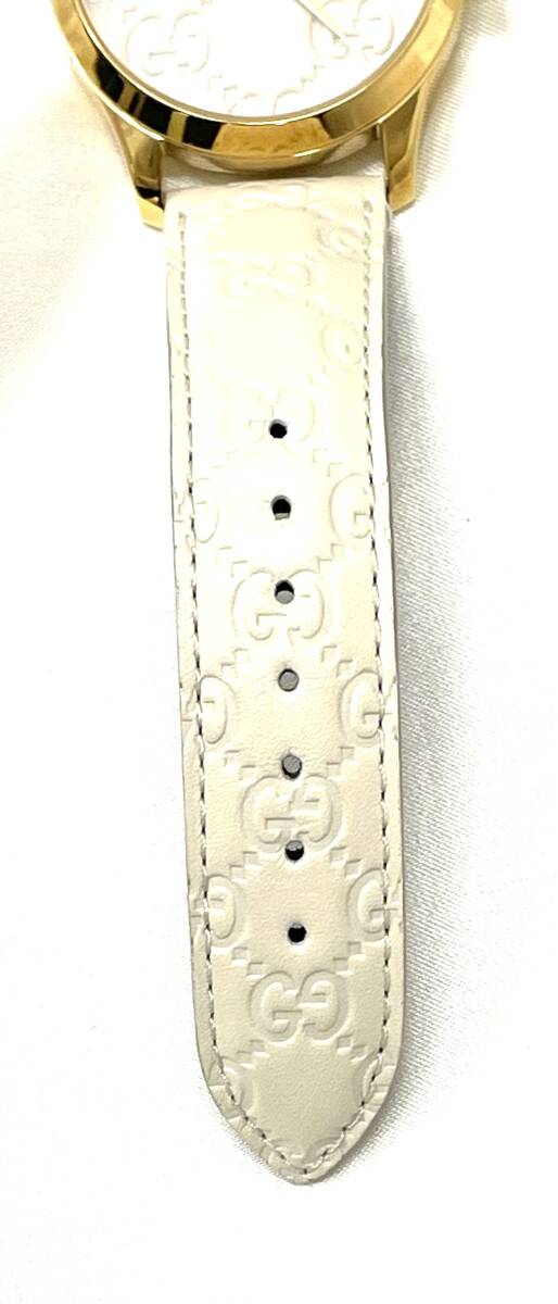 | 【B】【17305】★☆GUCCI グッチ Gタイムレス 126.4 ホワイト×ゴールド レザー 箱付き 美品 稼働品 ユニセックス時計 現状品☆★ | ||