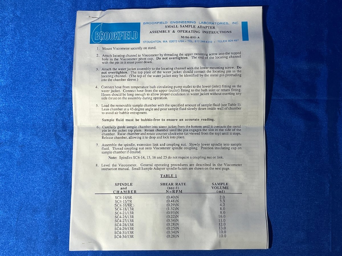 3862-4【BROOK FIELD / ブルックフィールド】粘度用微細試料アダプター 型番:SMALL SAMPLE ADAPTER [浏览原始页面]