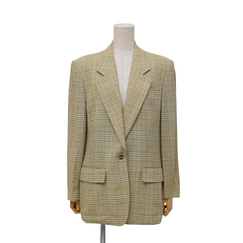 | MI3489〇Burberrys バーバリー*麻混*チェック柄*ジャケット*サイズ9AR*ベージュ×ブラウン×グレー系 | |||