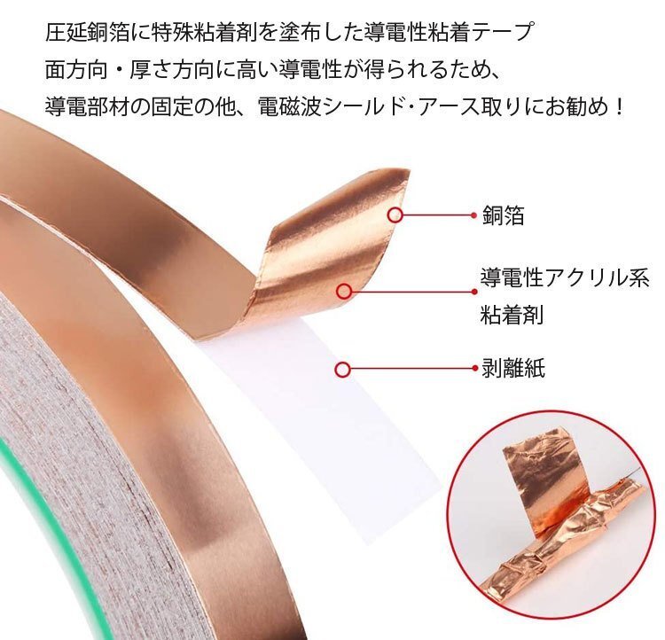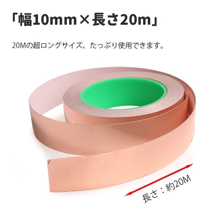 ◆両面導電性銅箔導電テープ 銅箔テープ 粘着性 幅10mm 長さ20m 導電テープ 静電気除去 EMI対策 静電気除去 電磁波シールド 導電部材の固定 車に貼ると車体の静電気を除去 燃費向上などの効果も期待 3J21810MM20M