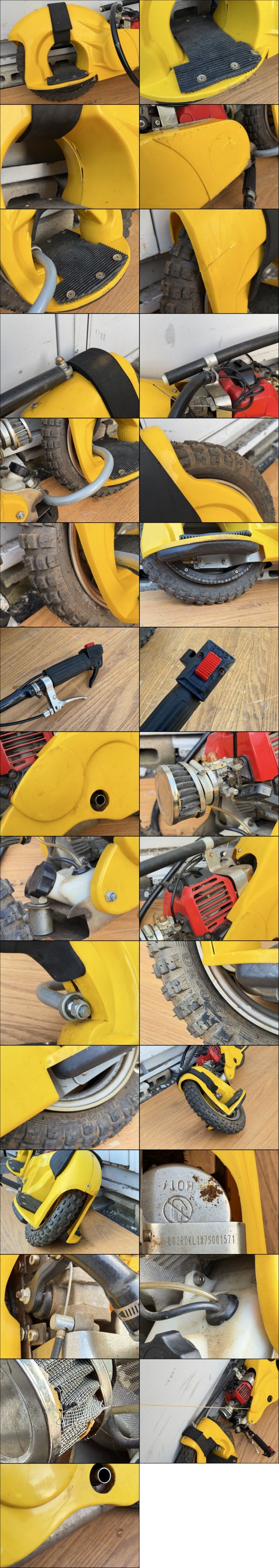 状態チェック担当者のコメント 使用に伴うスレ傷があります。 フレームが割れている箇所があります。 エンジン周りは汚れ、錆が多いです。 タイヤは全体的に茶色くくすんでいます。 タイヤは空気が抜けていますが、栓にあう空気入れがなくパンクの確認できていません。 エンジンは起動しませんでした。 ジャンク品としてお考え下さい。 商品は写真にあるもので全てです。 必ず写真で確認お願い致します。 他にもたくさん出品しています。 同一梱包致しますのでよろしくお願いします。 ※ジャンク品の商品は、故障や破損、欠品、動作未確認、 正常な動作のお約束ができない等、 様々な理由にてジャンク品として販売をさせて頂いております。 その為、商品の返品・返金・交換等の 対応は出来ません。 修理、パーツ取りなどを想定しお買い求め下さい。 ※保証について 動作保証と記載のある商品については、商品に不具合が生じた場合、 商品到着後8日以内は返品、返金をお受けいたします。 取付や工事が必要なものに関しましては、 それに必要な費用は当方では負担致しません。 取付費、工事費は保証対象外となります。 当方で販売いたしました商品が明確な原因で重大な事故へと発展いたしました 場合にも、商品代金の2倍以上の責任は負いかねます。 商品を利用される際には、必ず状態をご確認ください。 |