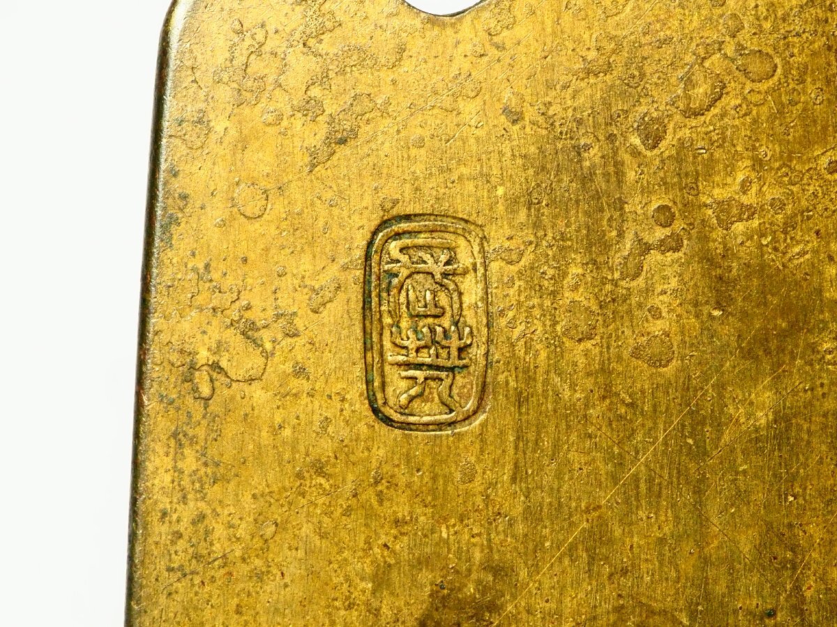 | 《サイズ》 大きさは 幅 21cm ・ 高さ 0.6cm ・ 奥行 5.8cm ・ 重さ 116g 【※計測サイズは最大径で計測しております(例;茶釜であれば、幅は鐶付の先から鐶付の先まで、高さは底面から摘みの先までとなります】 | |||