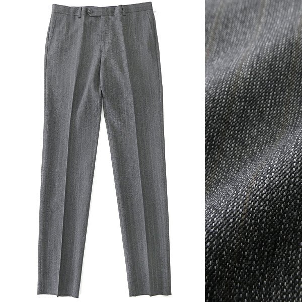 ※ハンガーは付属いたしません※ A6サイズ(標準体型のLサイズ相当) 胸囲94 胴囲82 身長175 ウエスト85 ※写真は別サイズを使用している場合がございます※ ※商品に記載されたサイズ・寸法です※ 【ジャケット】 肩幅45.5cm 身幅52cm 袖丈61.5cm 着丈73cm 【スラックス】 ウエスト85cm(内回り1周) 股上25.5cm 股下90cm 裾幅18.5cm 腿幅29cm(股下10cm部分) 表地:毛99% ポリエステル1% (ポリエステル1%は装飾糸として使用) 胴裏:ポリエステル100% 袖裏 上部(ストレッチ部分):ポリエステル65% 複合繊維(ポリエステル)35% 下部:キュプラ100% 下衣裏地:ポリエステル100% グレー×ブラウン |