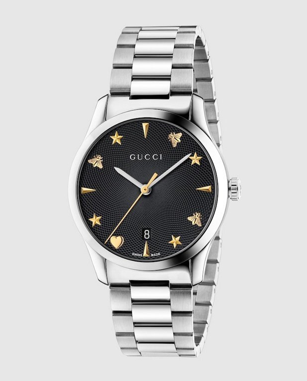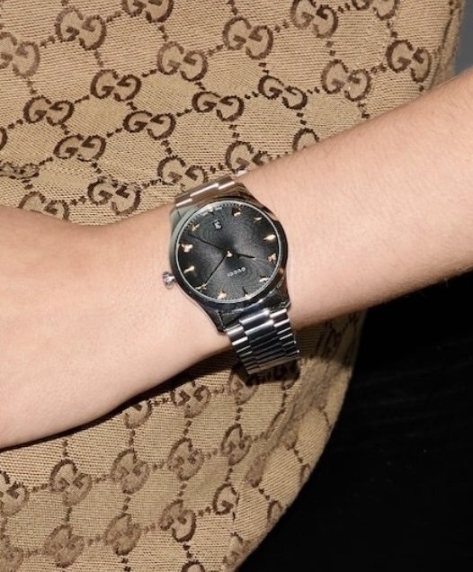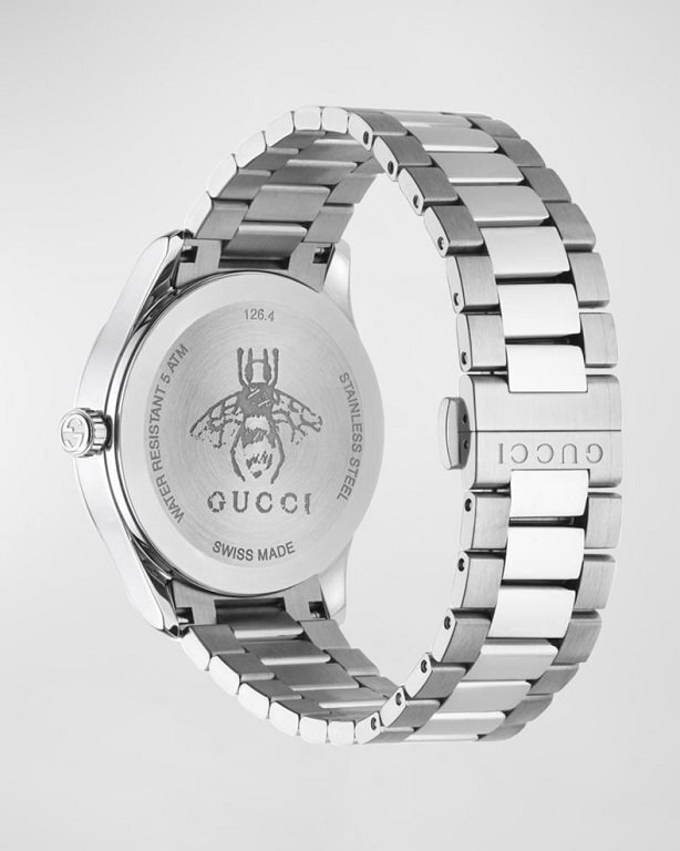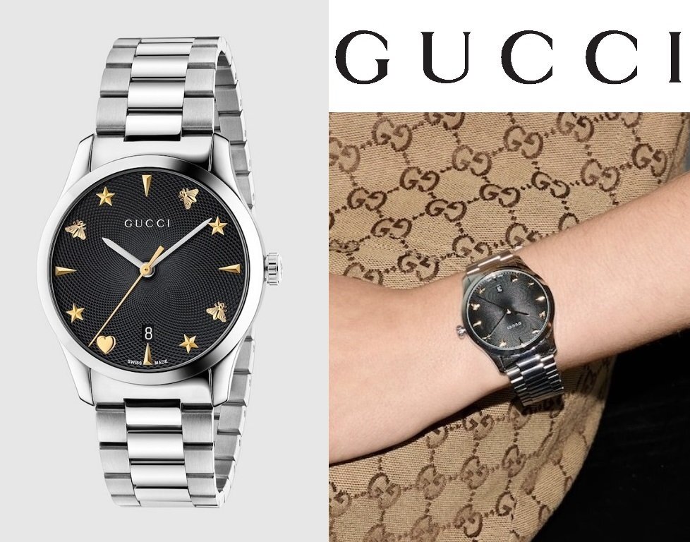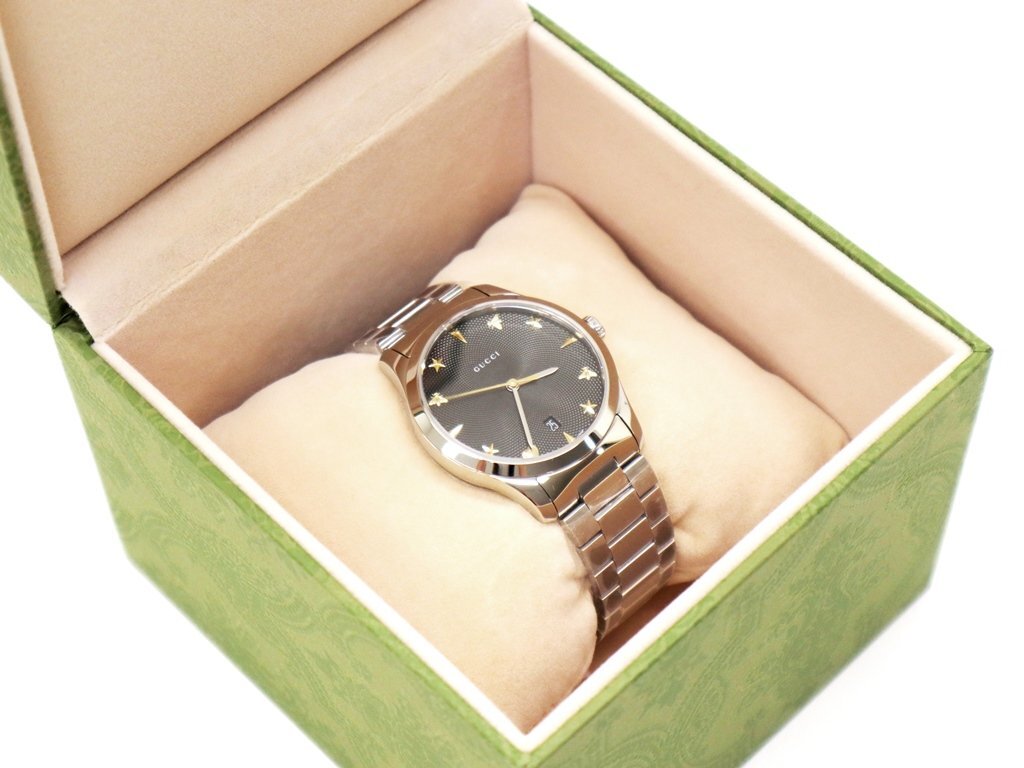 37万新品◆GUCCI グッチ ラウンド型ブラックギョーシェダイヤル『G-Timeless』シルバーブレスレット腕時計