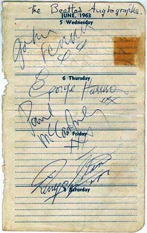 コメント・・・1963年に書かれたビートルズ4人のサインです。