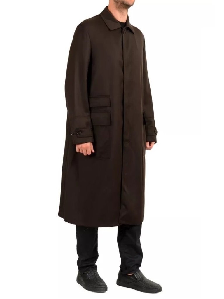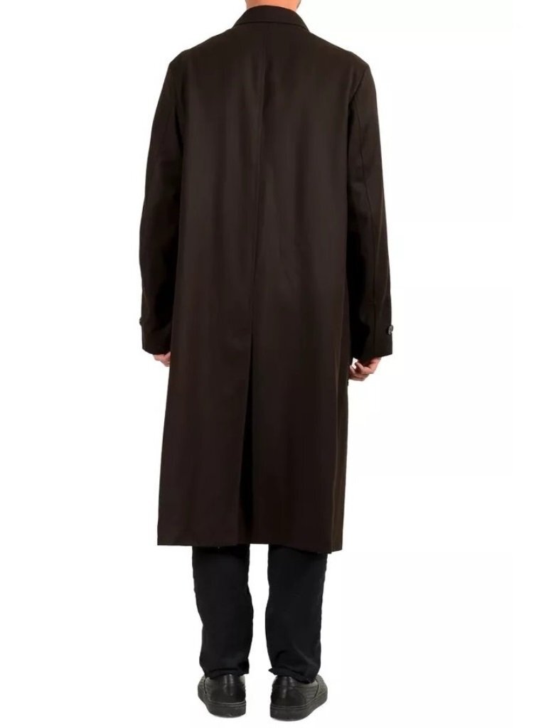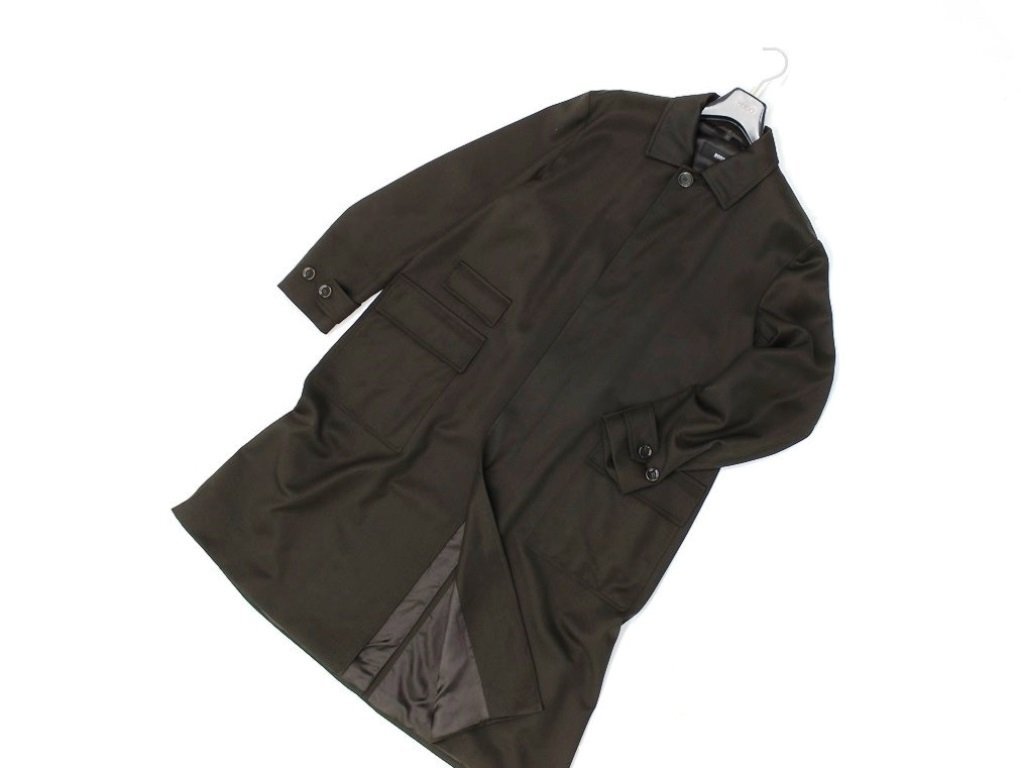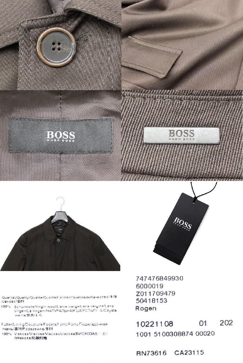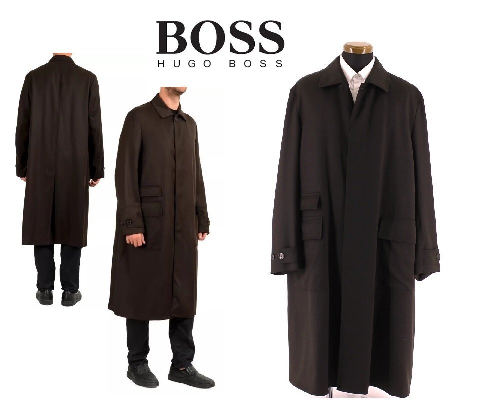 21万新品◆52=L◆BOSS ヒューゴボス ウール100% ボタンダウン ロングコートダークブラウン濃茶