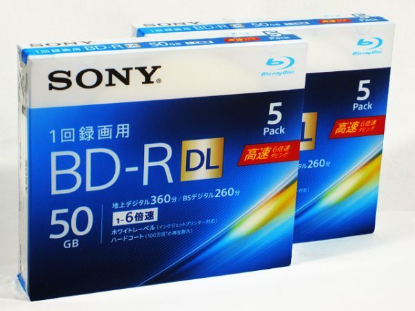 SONY BD-R DL 1回録画用 50GB 6倍速 5枚パック 2個セット (5BNR2VJPS6) 原産国:台湾 です。
