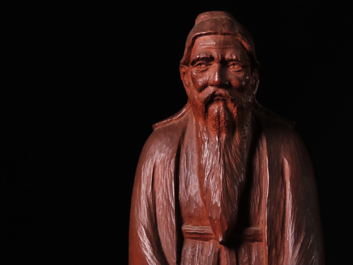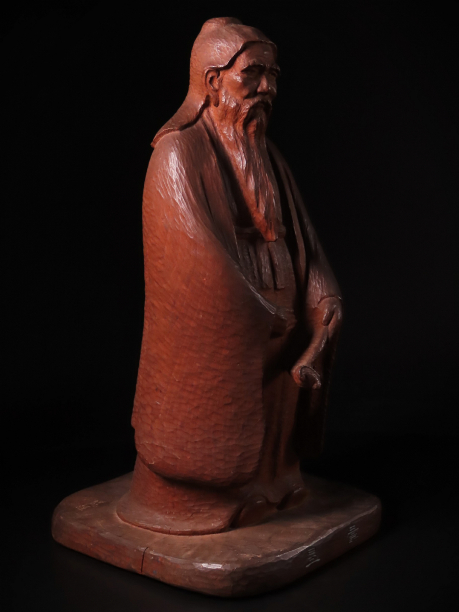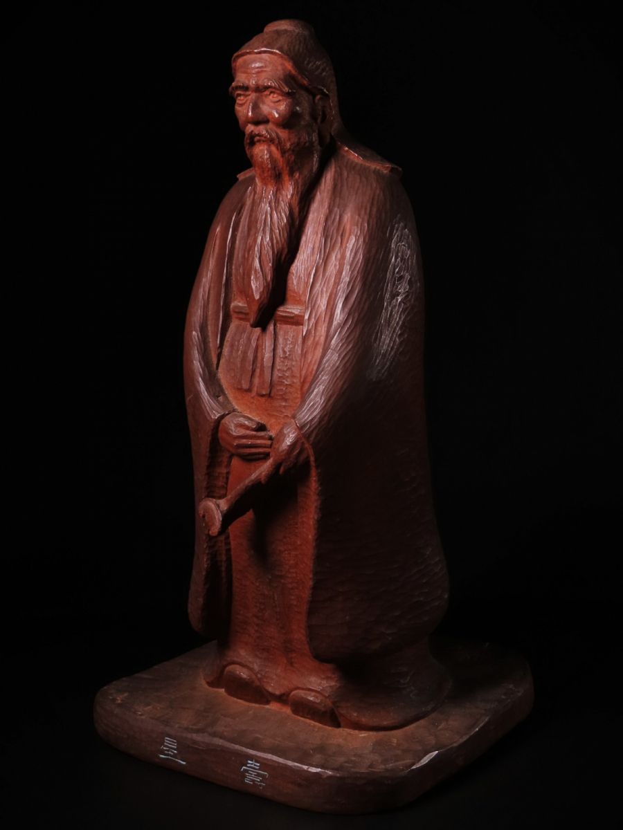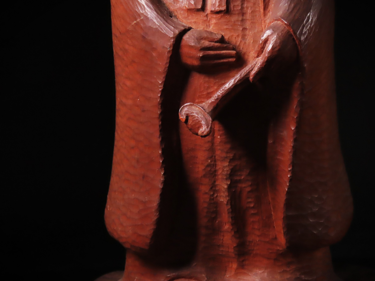 【ONE'S】中国古玩 彫刻家 筑涯 本人作 圧巻の写実 木彫 『壽星』 寿老人像 極上細密彫刻 置物 高34.2cm 重量1.6kg 古美術品 | |||