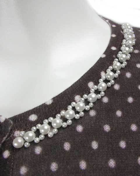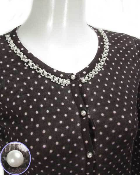| 1枚で華やかな雰囲気になれるカーディガン。お首周りにはパールがあしらわれています。裾や袖先にはお花柄があり、女性らしい雰囲気。ブラウスとあわせたり、ワンピースの上に羽織ったりと春夏から秋口スタイルで活躍してくれます。 |