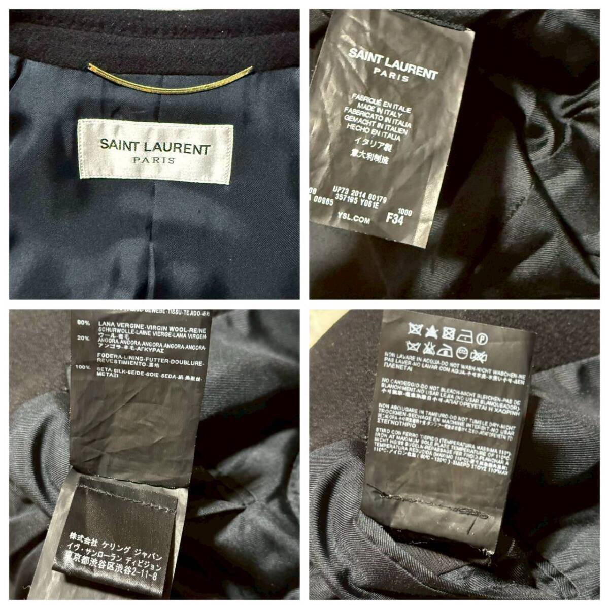 商品名: SAINT LAURENT PARIS by Hedi Slimane 2014 サンローラン パリ 2014年 エディスリマン ウール アンゴラ チェスター コート サイズ34 黒 ブラック
