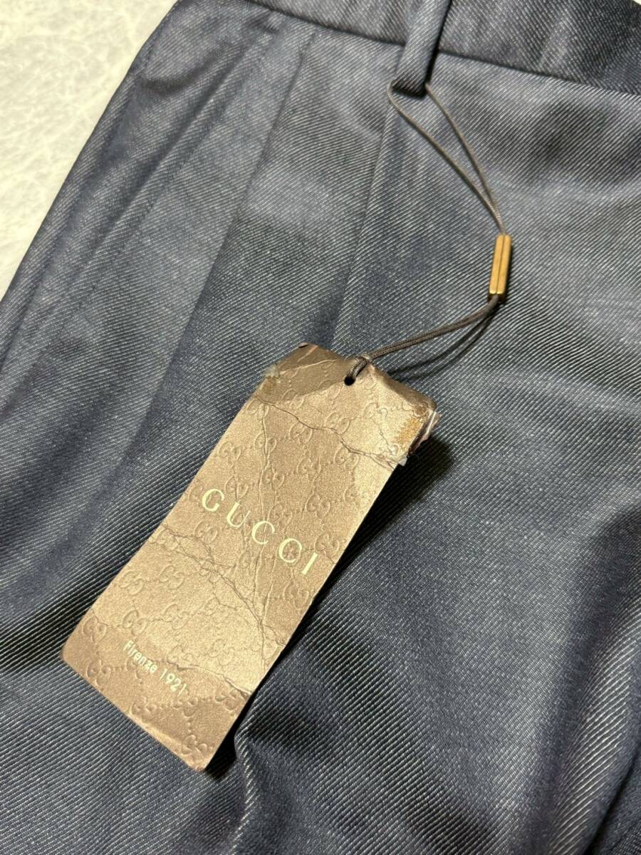 商品名: タグ付 GUCCI グッチ ウール モヘア デニム 2タック スラックス パンツ サイズ46 ネイビー 紺