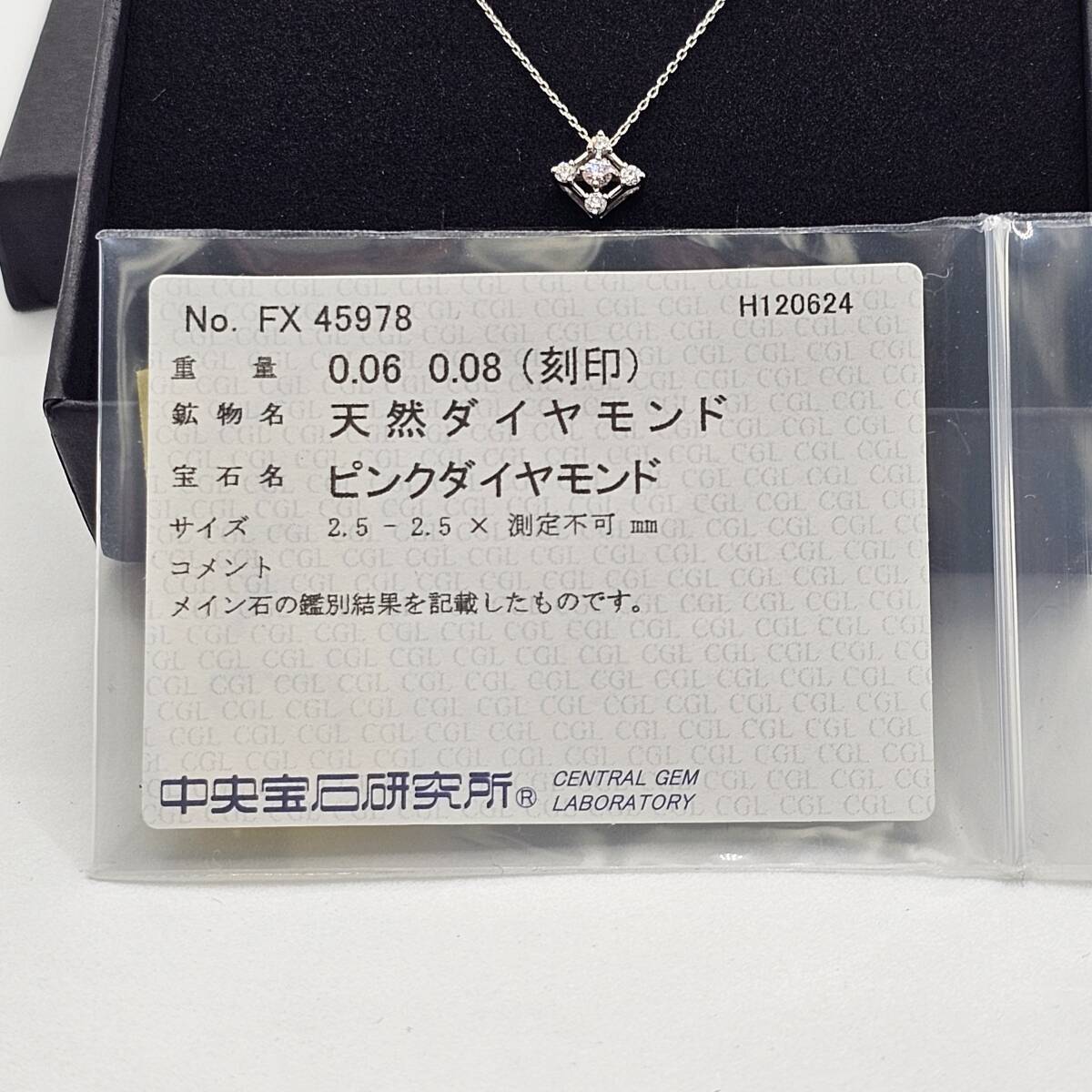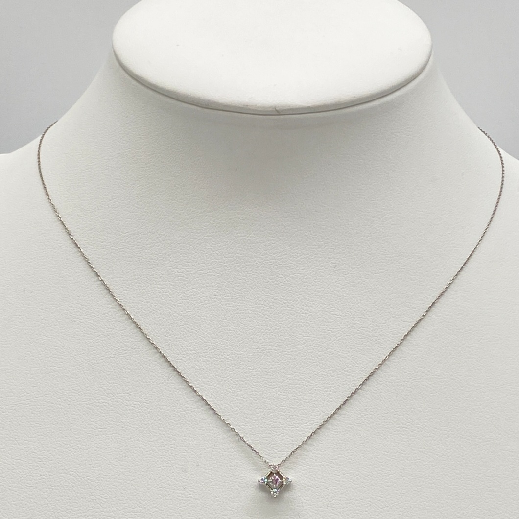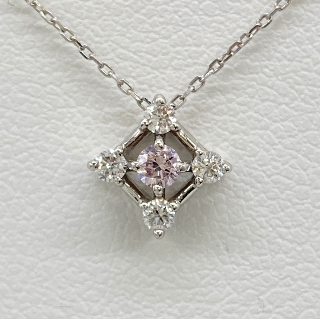 こちらは、胸元で上品に輝く、プラチナ製の天然ピンクダイヤモンドネックレスです。