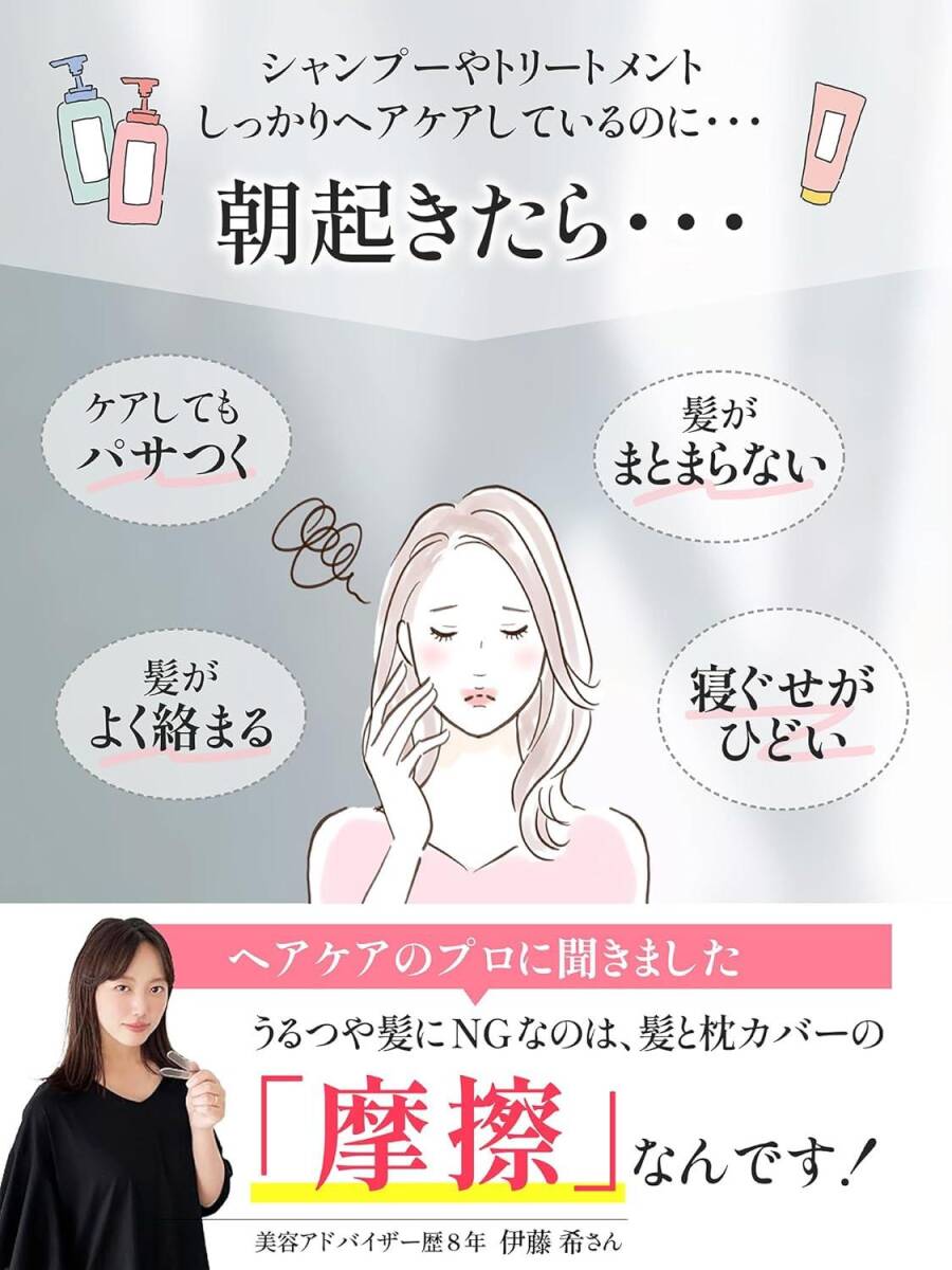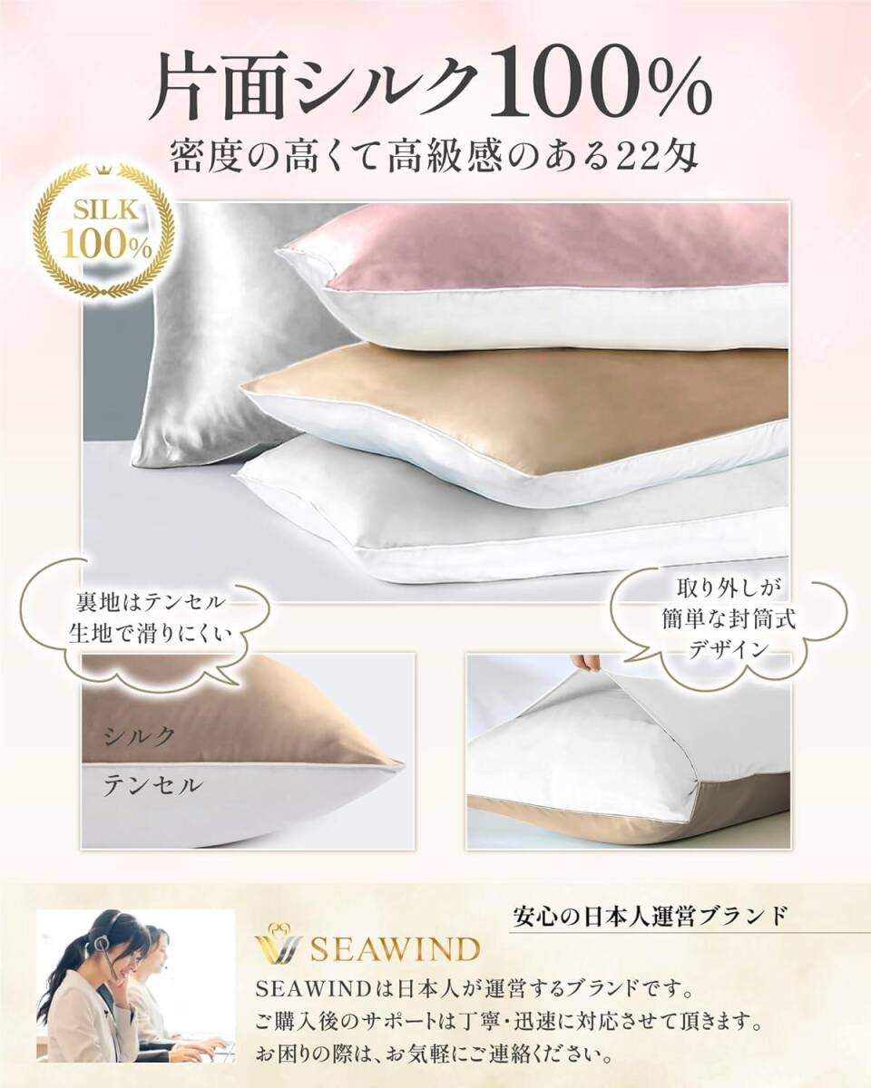 | 特徴 | 髪に優しい、保湿効果、静電気防止、摩擦軽減、通気性良好、オールシーズン使用可 |