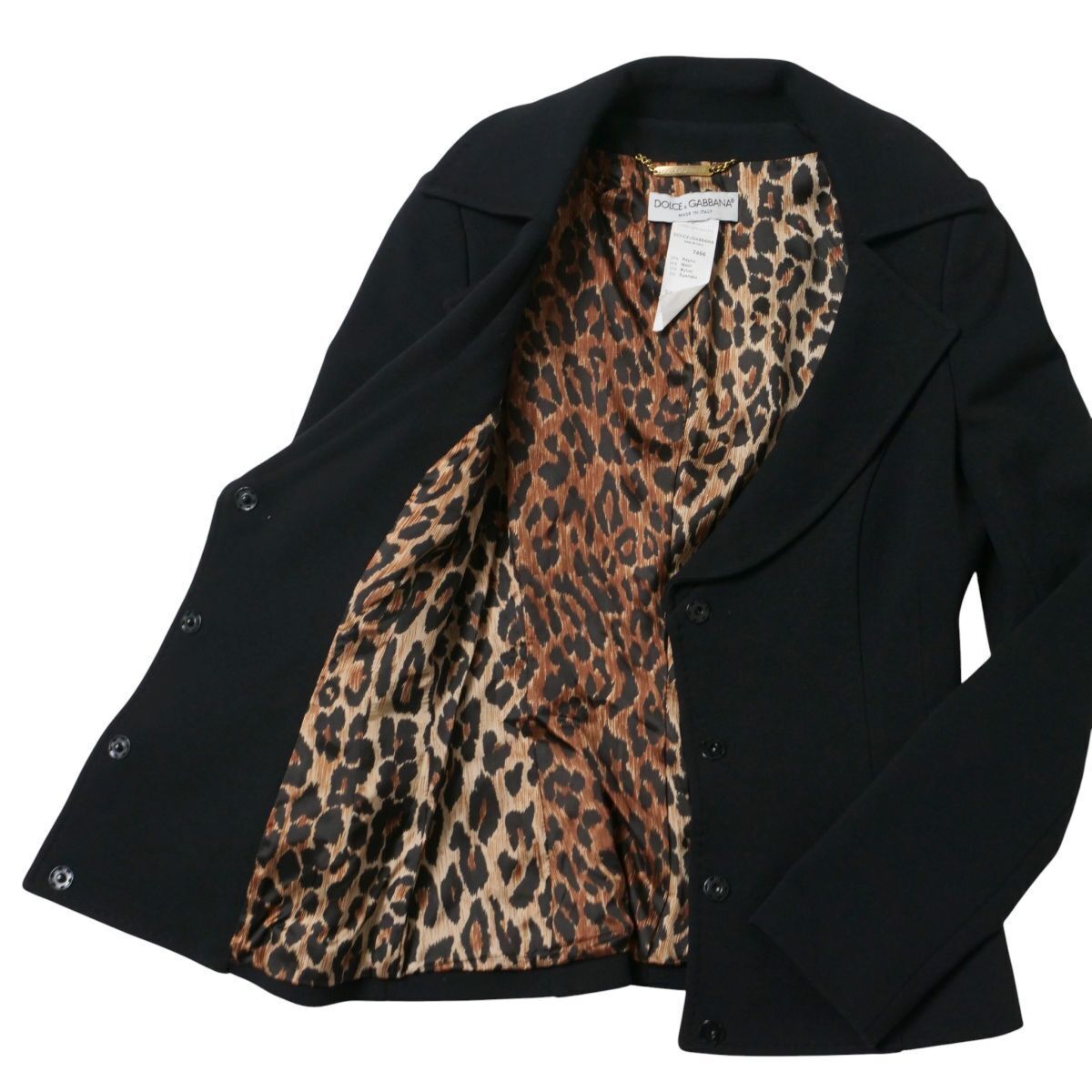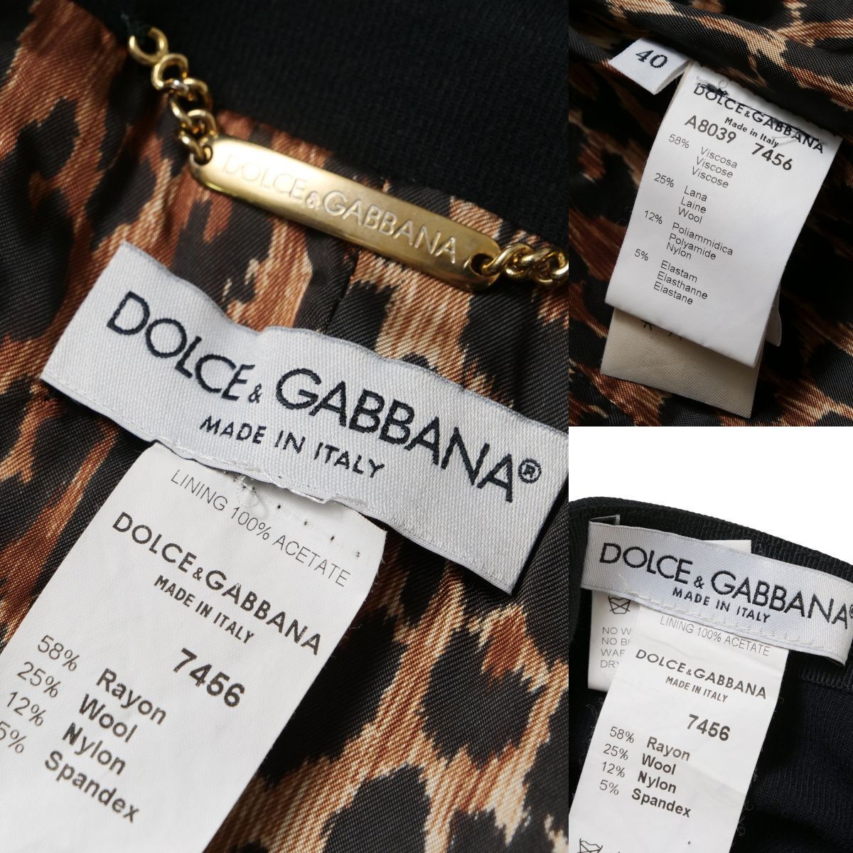 SGS3681☆ドルチェ&ガッバーナ DOLCE&GABBANA スーツ セットアップ テーラードジャケット+タイトスカート 裏レオパード柄 黒 サイズ40
