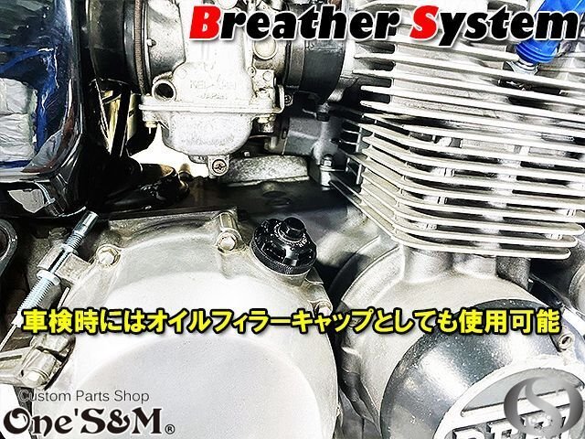 | 従来品とは異なり、ブリーザーとして使用しない場合は、専用ボルトで締め付けるだけでオイルフィラーキャップにも使用可能な優れもの! | ||