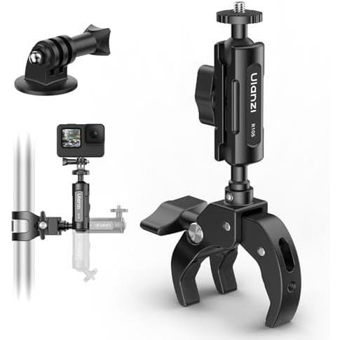 Ulanzi R105 スーパークランプ【2025新型 3爪構造】360°回転 金属製 カメラマウント 一体式 カメラグリッパー ホルダー1/4”ネジ 自転車・バイク・オートバイクリップマウント GoPro用アクセサリー アクションカメラ用マウント付き iPhone/Android アクションカメラ/液晶モニター/ミラーレス/デジタルカメラ/ビデオカメラに対応