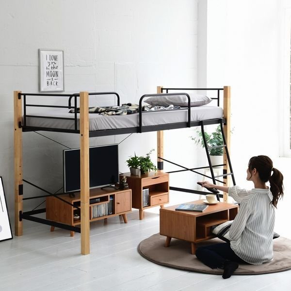| 温かみのある天然木とクールなスチールのコントラストがおしゃれな、ちょっと低めのロフトベッドです。 高すぎないのでどんなお部屋にもおすすめできます。 ベッドの下のスペースは収納に使っても、ロースタイルな生活の一部にしても。 お部屋の雰囲気にあわせて4カラー展開が嬉しい! |