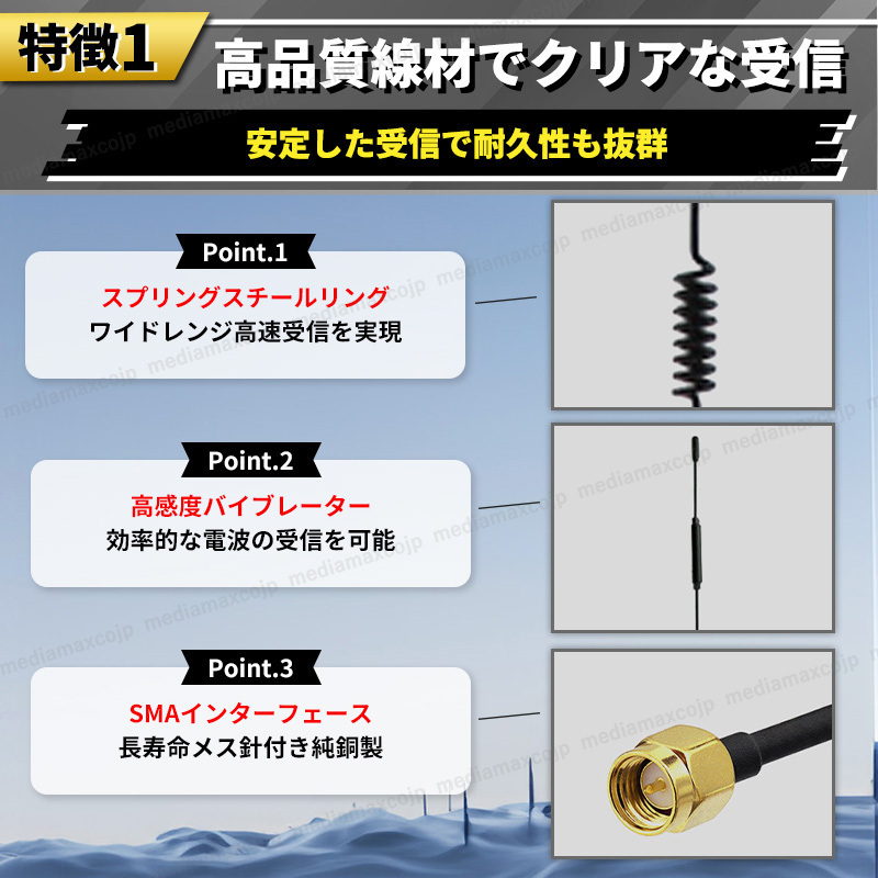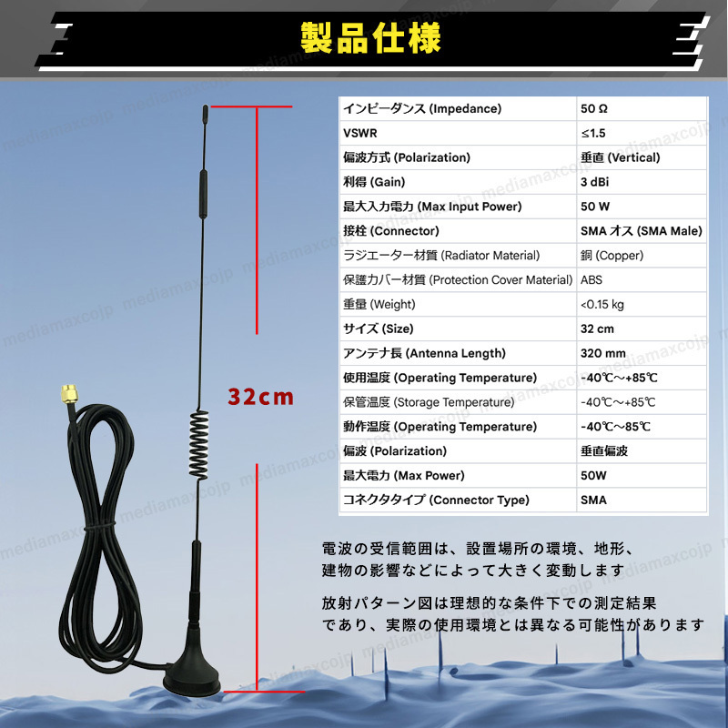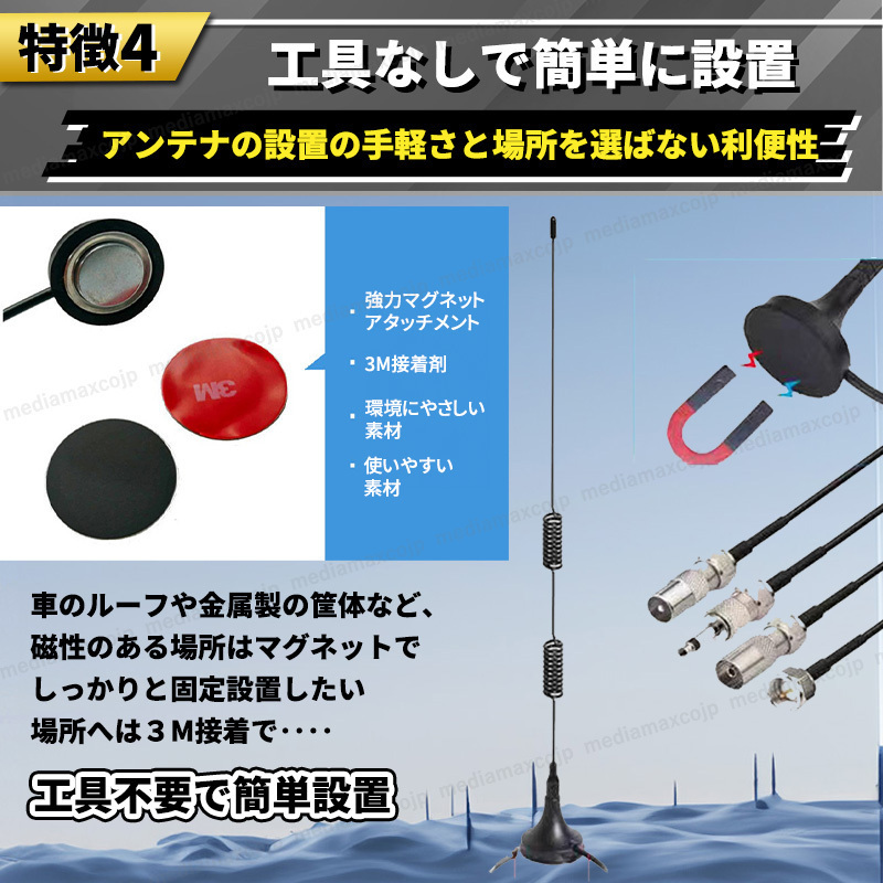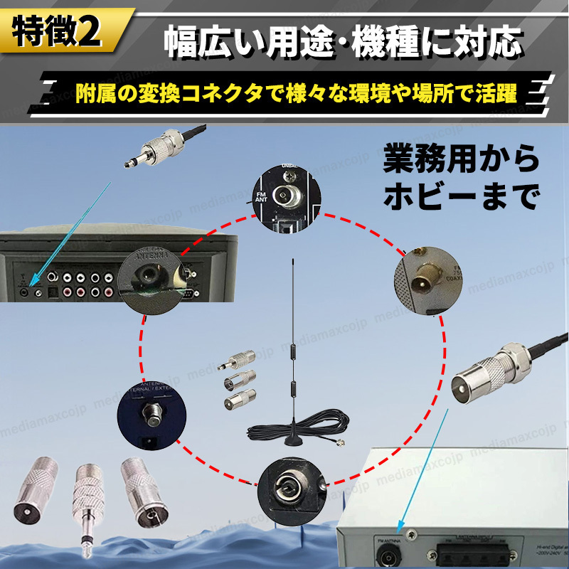 | 【もう音質で妥協しない!クリアなサウンドで 音楽体験を劇的に変える!高感度FMアンテナ】 「お気に入りのラジオ番組がノイズ混じりで聴きづらい...」 「もっとクリアな音質で音楽を楽しみたい!」 そんなあなたに朗報です! 【高感度FMアンテナ】 があれば、まるでライブ会場にいるかのような 臨場感あふれるサウンドで、音楽やラジオを楽しめます! クリアで高品質なサウンド: 銅信号受信キャリアと無線FMチャンネル 強化アンテナの組み合わせにより、高感度受信を実現! 簡単設置: マグネット式ロッドアンテナで、窓際やデスクなど、 好きな場所にワンタッチで設置可能! 幅広い互換性: 3種類の変換アダプター付きで、JVC、ソニー、 ヤマハなど、様々なオーディオ機器に対応! 安定受信: 高導電性の銅芯線を使用し、安定した電波受信を実現。 屋内、屋外で使用可能。 【商品仕様】 サイズ:30cm×3cm×2cm 重量:68g カラー:ブラック インピーダンス:75オーム 最大範囲:10フィート ゲイン:7dBi 定在波比:インピーダンス:50オーム 方向:オールラウンド ケーブルコネクタ:F型オスコネクタ 動作温度: -20~+80℃ 保管温度: -30~+85℃ 【商品詳細】 ケーブル長さ: 3m コネクタ: F型オスコネクタ 変換アダプター: PALオス、PALメス、3.5mmアダプター 対応機種:YAMAHA(ヤマハ)、SONY(ソニー)、 Panasonic(パナソニック)、SHARP(シャープ)、 BOSE(ボーズ)等 ![]() powered by auction-labo.com 【今すぐ、極上の音楽体験を!】 クリアなサウンドで、お気に入りの音楽やラジオを心ゆくまで楽しめます。 簡単な設置で、届いたその日から快適な音楽ライフをスタート! 安定した受信で、ストレスフリーな音楽体験を。 | ||