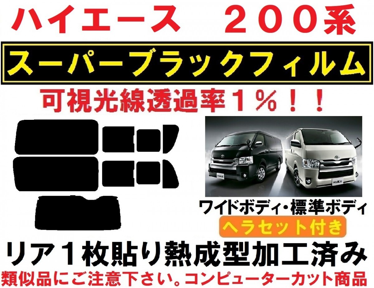 | 200系ハイエース/レジアスエース、ロング標準ボディ・ロングワイドボディ用スーパーブラック『可視光線透過率1%』1枚貼り成型加工済みフィルム リア5面セットです。(専用施工液付き) 平成16年~令和7年のマイナーチェンジ後まで、200系ハイエース・レジアスエース(標準ボディ・ワイドボディ)各種対応出来ます。 ※適合等 ご不明な点など有りましたら、お気軽にご質問下さい。 ◇◆◇当商品には、画像2のヘラセットが付属します◇◆◇ ■滑りの良いシリコンタイプのゴムヘラ スムーズに水切り(清掃)・貼り付け後の水抜きが出来ます。 実際の業務でも色々な物を試しましたが、シンプルなこの形状・このメーカー・このグレードが1番使いやすいです。 柔軟性が有りガラス(フィルム)に密着するため、フィルム折れも防げます。 ■使いやすい厚みとコシの有るプラヘラ 形状は似ていても各メーカーにより硬さ・厚みなど色々と有ります。 慣れていない方でも扱い易いように少々柔らか目の物になります。 ヘラ先にはフッ素樹脂加工のクロスを貼って有りますので、滑りが良くキズを防止します。 ■ワイプオール(不織布ワイパー) 布同様の丈夫さと紙の持つ吸水性を発揮。糸くずの発生が無く均一素材のため異物混入の心配が有りません。 施工前のガラスクリーニング~施工時にフィルムが触れる可能性の有るガラスの周りのゴム部品の拭き取り清掃~吸水等に大変便利です。 全て実際の業務に使用している物で、その中から使いやすい物を選んでいます。 ヘラセットがご不用の場合、フィルムのみの商品も有ります。こちら ◇◆◇精密コンピューターカット◇◆◇ 貼りやすさを最優先に各部のサイズ・形状など微調整し、改良を重ねた独自のデータを製作。 高精度な最新・大型カッティングプロッターによるカットで正確で滑らかなカットラインを再現しています。 施工業者だからわかる、貼りやすいサイズ・形状に仕上げています。 ◇◆◇リア1枚貼り成型加工済み◇◆◇ リアガラスの湾曲に合わせて熱成型加工して有りますので、平面に貼るのと同様にたるみが出ず1枚貼り出来ます。 ※最適な状態に成型加工して有りますので、ヒートガン(ドライヤー)等は不要です。 ◇◆◇標準ボディ・ワイドボディ対応◇◆◇ 標準ボディ・ワイドボディ 4ドア・5ドア リアワイパーの有無 年式 グレードなどにより、ガラスの種類が複数有るため 落札後お車の詳細をお聞きし、適合する商品をご用意させて頂きます。 ※グランドキャビン等、スーパーロングボディ用はこちら ◇◆◇専用施工液付属◇◆◇ 軽視されがちな施工液ですが、貼りやすさに大きく関わる部分になります。中性洗剤などで代用せず、必ず付属の専用施工液をご使用下さい。 濃度については車種・季節などにより変わりますので、個別にお知らせ致します。 ◇◆◇業務用高品質フィルム使用◇◆◇ 使用しているフィルムは、安心の国内メーカー 業務用高品質フィルム「ニュープロテクション」シリーズです。(可視光線透過率1%) 業務用フィルムの中で最も濃いタイプで、全商品キズに強いハードコート 紫外線99%カット 遮熱性も高めです。 同シリーズで可視光線透過率 5% 10% 15% 25% の物もご用意出来ます。 ご希望の場合は、落札後濃さの指定をして下さい。(部分的な色変えも可能です) ご指定の無い場合、全て1%になります。 部分的にフィルムが必要になった場合、単品販売も承ります。 他にもハイエース用フィルム各種出品中です。 ご不明な点など有りましたら、お気軽にご質問下さい。 主な適合型式:TRH200K、TRH200V、KDH200K、KDH200V、KDH201K、KDH201V、KDH205K、KDH205V、KDH206K、KDH206VTRH211K、TRH214W、TRH216K、TRH219W、KDH211K、TRH211K、TRH214W、TRH216K、TRH219W、KDH211K GDH201V GDH206V GDH201K GDH211K GDH216K | ||