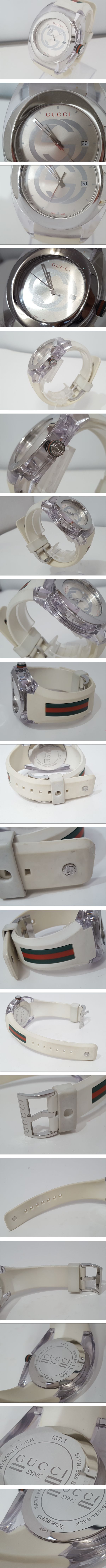 ※佐川急便の場合、離島など別途中継手数料がかかる地域が御座います。 その場合はお振込みを追加でお願いする場合が御座います事、 事前にご了承の程、宜しくお願い致します。 [商品名] 1円スタート GUCCI グッチ SYNC シンク 137.1 クォーツ 腕時計 [サイズ] ケース(リューズ込み)約5×4.5cm, 風防(ガラス/樹脂面)直径約3cm, ベルト幅約3cm, ラグ幅約2.1cm, 腕周り約17-21.5cm, ホール数7個 [素材] ステンレススチール×ラバー他 [カラー] ホワイト系×シルバー系 [状態] 風防の所々に小キズ、 ケース部分にキズ、ベルトに汚れが御座いますが、 その他は良いと思います。