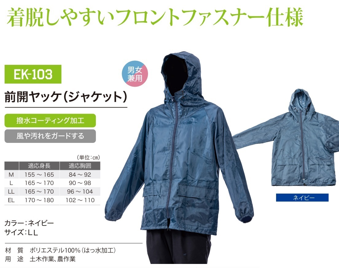 | EK-103 前開きヤッケ ネイビー LLサイズ | ||||