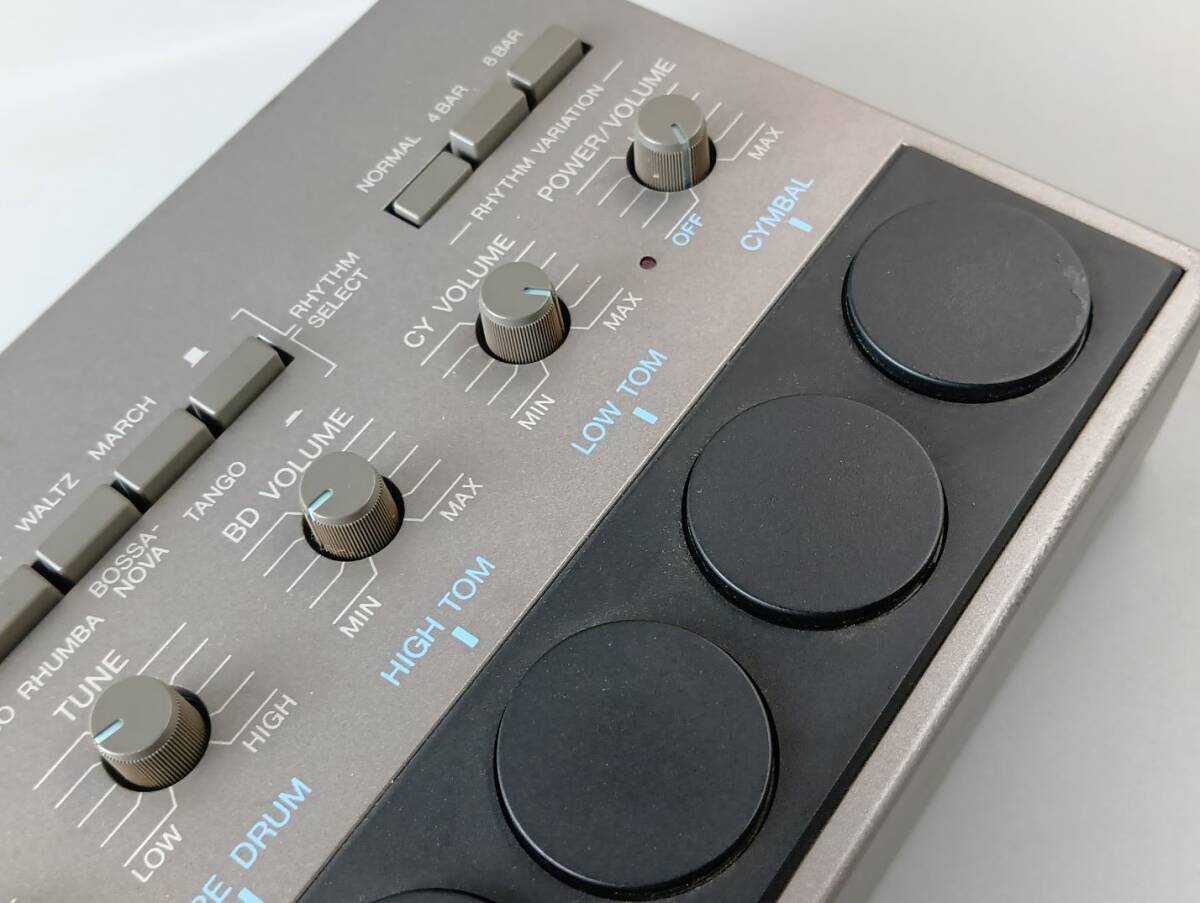 ACアダプターで通電確認、パッドの音出し、ボタンによるリズムの変化、つまみの音の変化を確認しました。ACアダプターは付属しませんので別途ご用意ください。。 | ||||