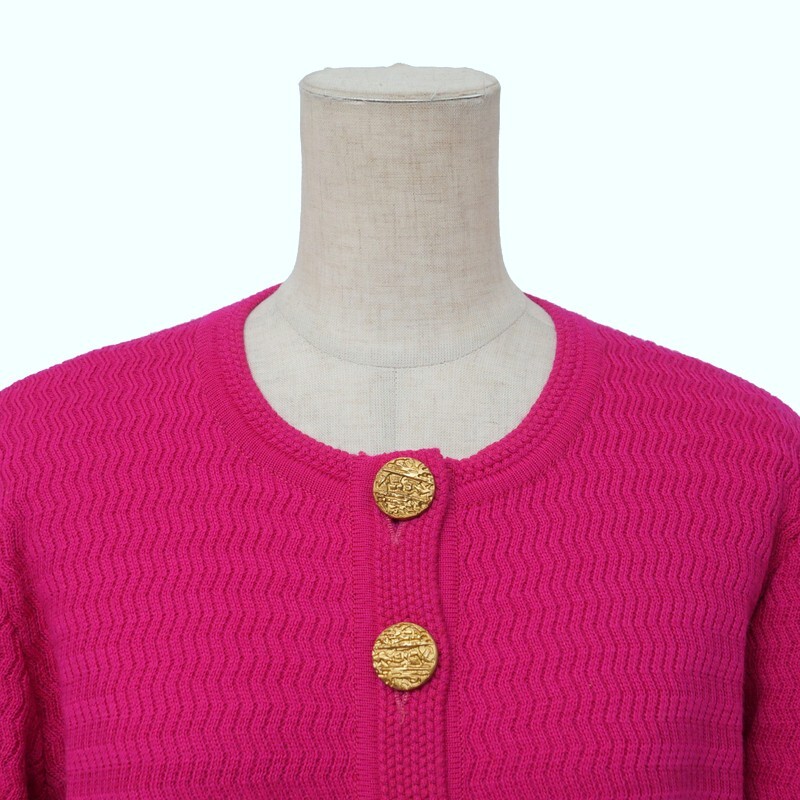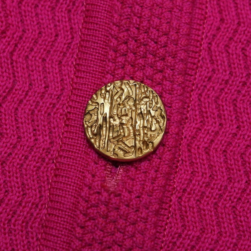 | MH9195*VINTAGE Yves Saint Laurent イヴサンローラン ウールニットセーター チュニック 金ボタン Size M ピンク | |||