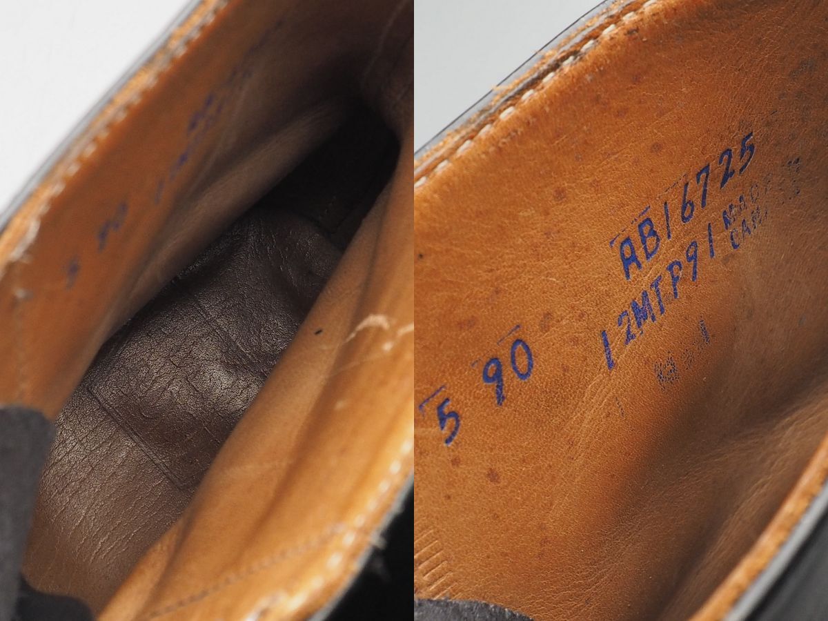 【コンディション詳細】 シューレースは交換されておりますので予めご了承ください。 ほかアッパーのシワ、薄い擦れや傷、シワに沿った細かな表面のクラック、インソールやライニングの薄汚れや淡いシミが見られますが、その他気になるようなダメージ等なくこれからも気持ちよくご愛用いただけます。 アウトソールの減りはトゥで1mm程度、ヒールで3~4mm程度です。 |