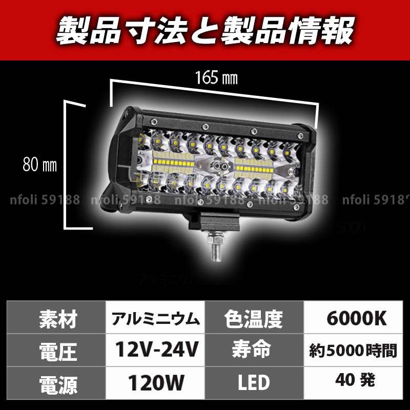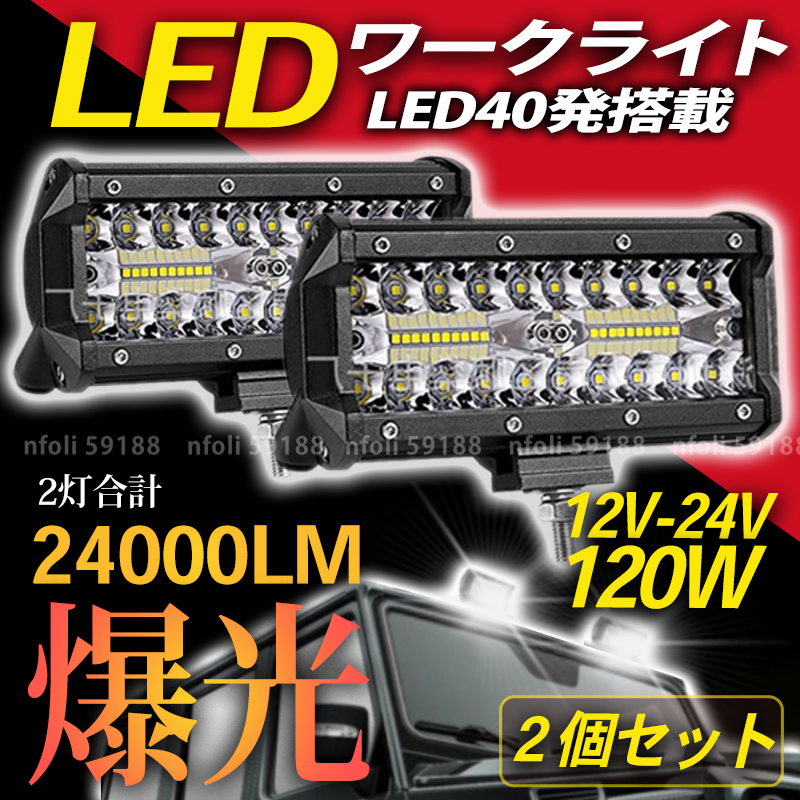 | ワークライト led 作業灯 12000LM 2個 新品 屋外 照明 12v 24v 白 120w 投光器 集魚灯 ランプ 重機 トラック 車 防犯 ガレージ 015 |