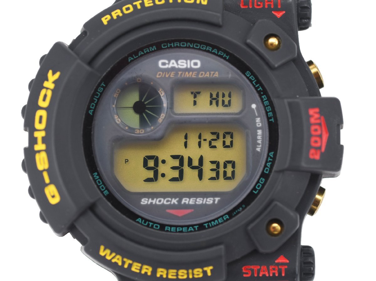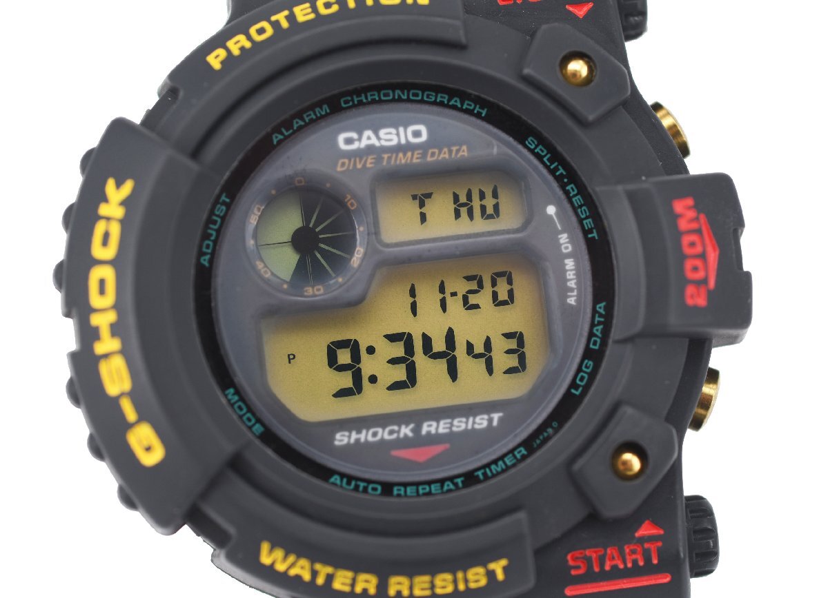 ナナハチヤは掘り出し物がいっぱいあります!! [レアモデル 未使用品] 稼働品【CASIO】カシオ G-SHOCK フロッグマン DW-6300-1A バックライト点灯OK 箱付のご案内です。 コンディションといたしましては、ご使用せずに保管されておりました未使用品(美品扱い)でございます。 稼働品で、時刻も合っております。 バックライトも点灯しました。 現在、ヒビや割れなどはございませんが、配送中にヒビが広がる可能性もございますのでご了承くださいませ。 ご検討ください。 ■製品説明 スキューバダイビングにも使用できるISO規格に準拠したG-SHOCK初の200m潜水用防水仕様の「FROGMAN(フロッグマン)」。 そのケースは潜水艦のハッチをイメージし、丸型の非対称ケースを採用。ダイバーズとしての機能は、潜水時間・潜水開始時刻を表示、またそのデータをメモリーすることが可能です。裏蓋には潜水ガエルのモチーフが刻印されています。 ■製品仕様 耐衝撃構造(ショックレジスト) スクリューバック ISO200m潜水用防水 樹脂バンド ダイビング機能(潜水時間:計測範囲23時間59分59秒(24時間)、表示単位:1秒/インターバルタイム:計測範囲23時間59分(59秒)、表示単位:1分) ログデータ(潜水開始時刻、潜水時間)を1本メモリー ストップウオッチ(1/100秒、24時間計、スプリット付き) タイマー(セット単位:1秒、最大セット:24時間、1/10秒単位で計測、オートリピート) マルチアラーム3本・時報 フルオートカレンダー 12/24時間制表示切替 ライト付き 精度:平均月差±15秒 電池寿命:約2年 ぜひ、ご検討ください。 当店の商品につきましては、全商品お客さまもご納得の掘り出し物オークション・販売価格です。 ぜひ、ご検討ください。 |