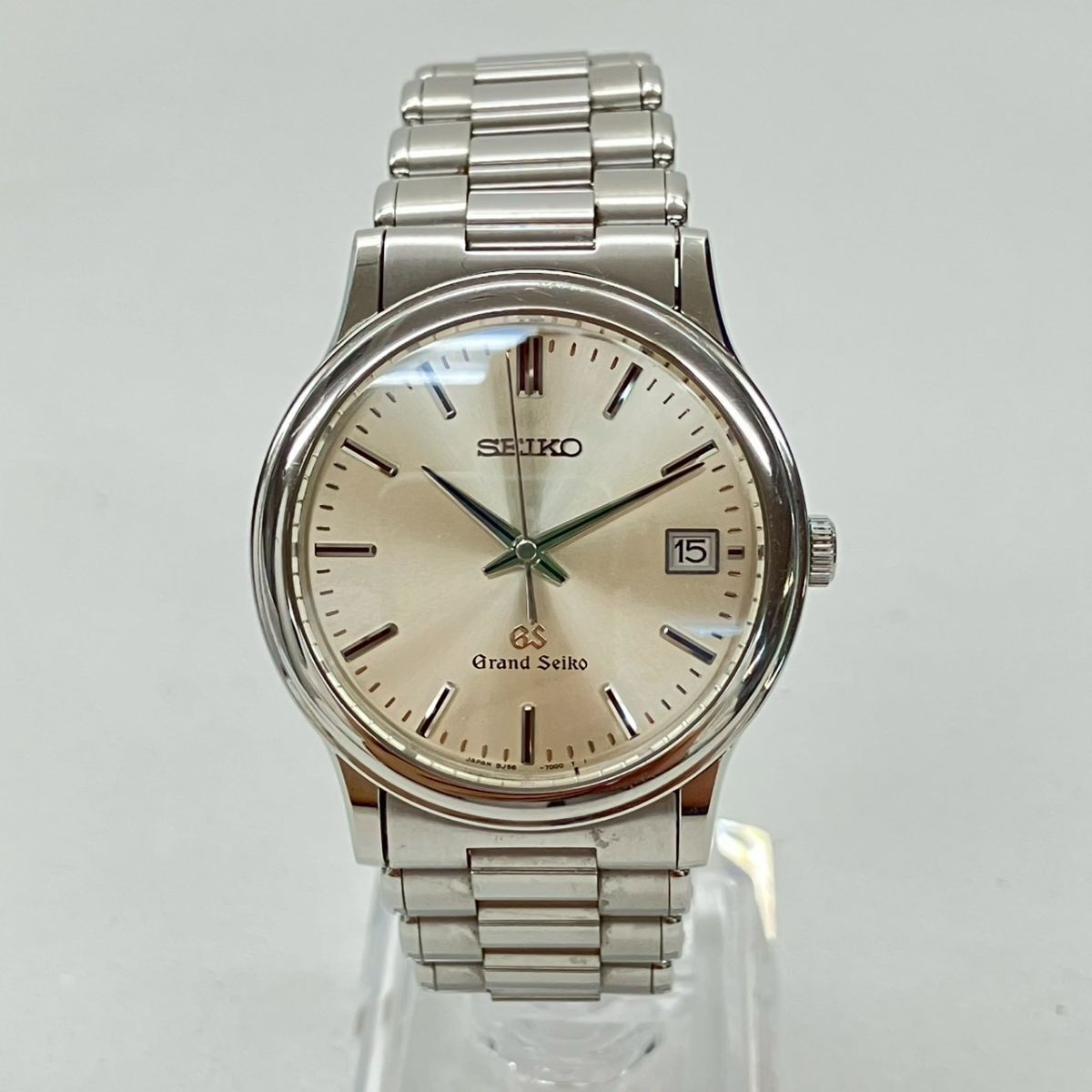取り扱っている商品は未使用・未開封も含め、全て一度は人の手に渡った一点ものの中古・ジャンク扱いでの商品です。 当方素人ですので肉眼で確認できる簡易的な検品、採寸、および簡易梱包となります。 ※稼働の記載につきましては秒針等の確認のみとなり、全体の動作を保証するものではございません。 また、出品時の中古品の動作状況となりますので、予めご了承の上でご入札ください。 不動の表記につきましてはクォーツ式のムーブメントの場合、動作未確認の状態となります。 電池交換後、不具合があった場合でも返金、返品の対象とはなりませんので、予めご了承くださいますようお願い致します。 細かな日差、オーバーホール状況、社外パーツの使用に関しては保証しかねますので、ご理解いただけた上でのご入札をお願い致します。 上記を踏まえた上で中古品、ジャンク商品として出品させていただいておりますので、全てご理解いただけた上でのご入札をお願いいたします ------------------------------------------------------------------------- 【メーカー】 SEIKO 【モデル名】 GRAND SEIKO 【型番】 8J56-7000 【シリアル】 190196 【サイズ】 直径約3.5cm 腕回り約16cm 【付属品】 画像参照 【稼働状態】 稼働 【その他状態】 リューズ動作 時間:OK 日付:OK 曜日:- ------------------------------------------------------------------------- 画像にあるものが全てです。 他詳細は画像にてご判断ください。 ※目立つ傷や汚れを中心に写真を撮っておりますが、画像に写りきっていない傷等がある場合もございます。予めご了承ください。 ※商品を多数出品している関係で、稀に商品説明や画像に誤りがある場合がございます。予めご了承ください。 こちらのページをご覧いただく際は、商品説明文と掲載している画像の全てを確認いただいた上でご入札ください。 | |||||||