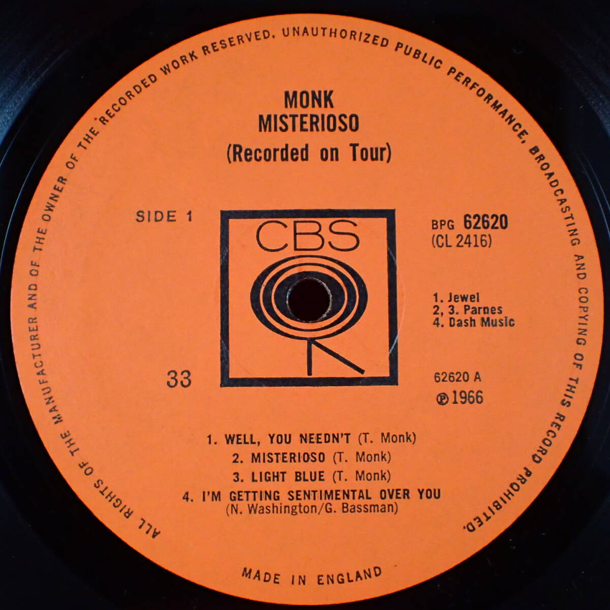 | 遺産級レア★幻の英国MONO+究極1A/1A+超極美盤+橙33★UK完オリ★CBS★THELONIOUS MONK/Misterioso:Recorded On Tour★CHARLIE ROSE | ||