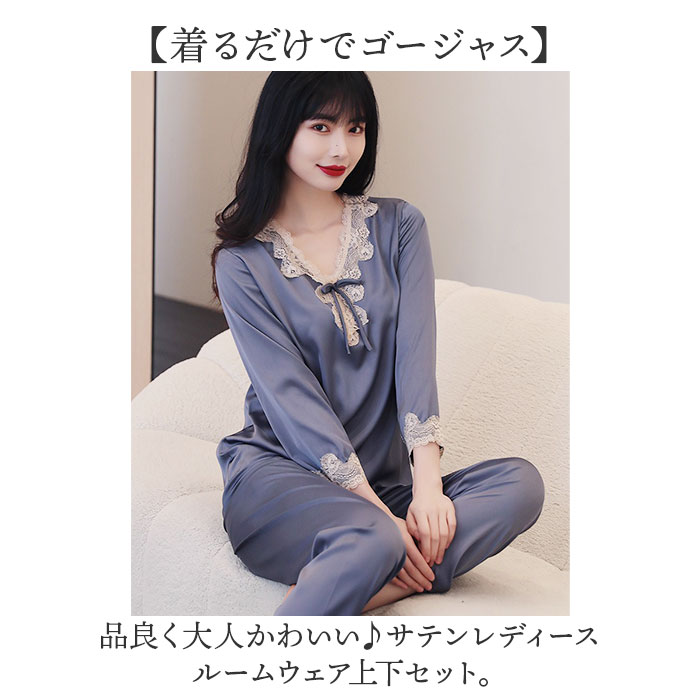 | 商品名 | ルームウェア パジャマ サテン レディース 上下セット |