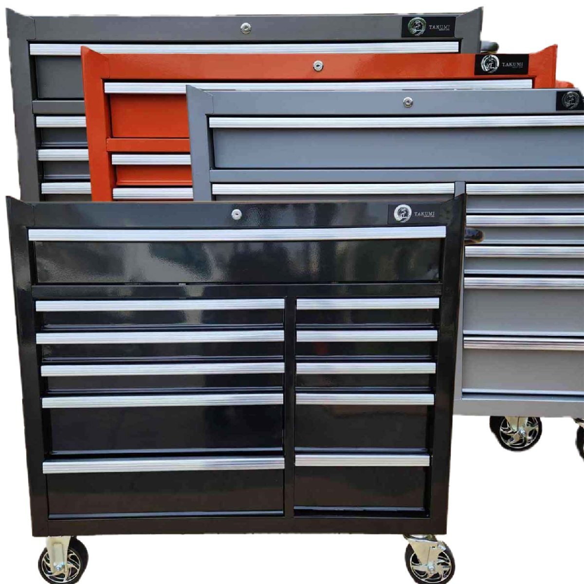 天板と引き出し全段に傷防止の保護マットが付属しています。 引き出しは全段ボールベアリング搭載で重たい荷物を入れてもスムーズに引き出すことが出来ます。奥まで閉めると簡易ロックがかかり非常に便利です。 セキュリティ万全の全多段ロック鍵も付属しています(スペアキー付) ベアリング搭載キャスターはスムーズな移動を可能にし