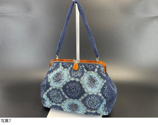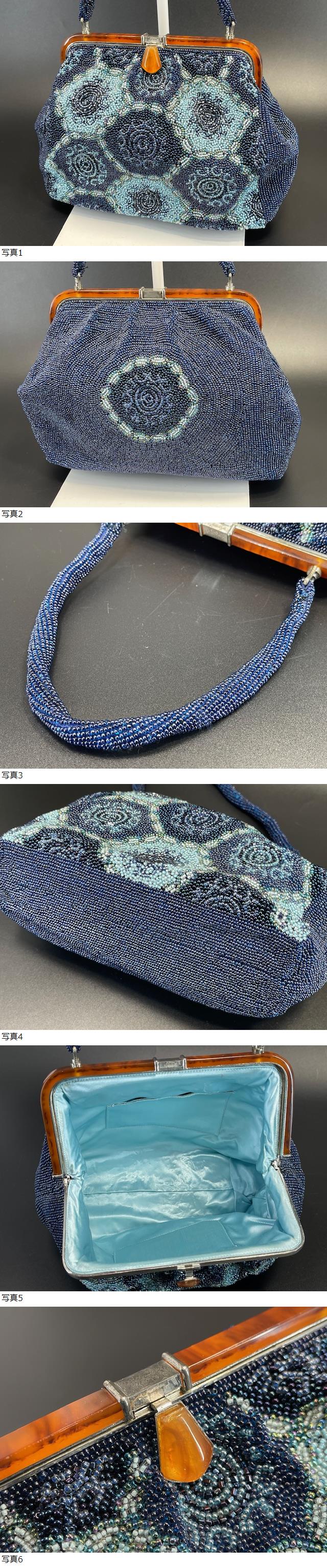 | 和装小物 ビーズバッグ がま口バック ブルー 幅約20cm USED品 |