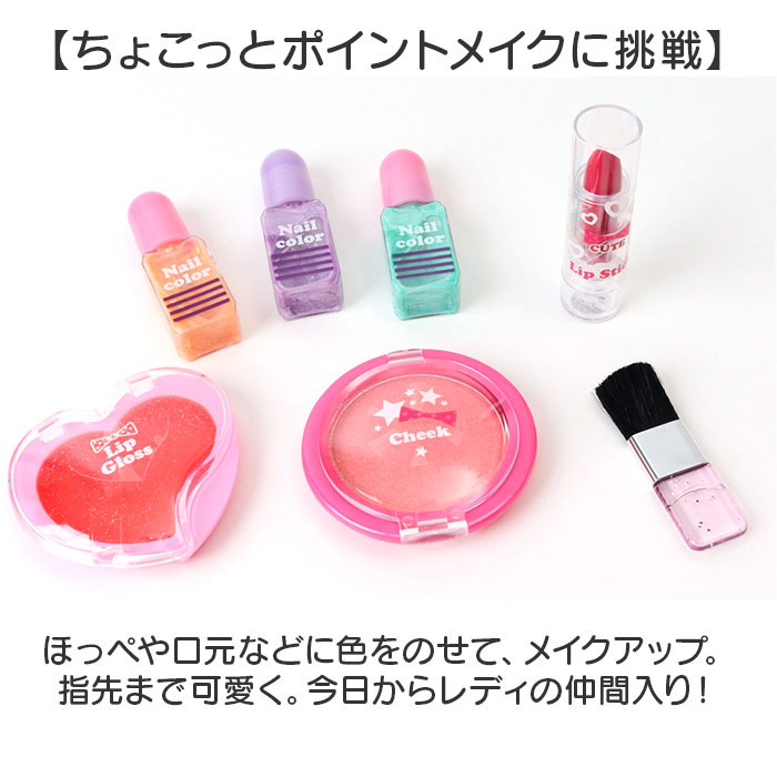 | 商品説明 | ・・【憧れのメイク体験ができる夢のセット】 ・リボン付きバッグにコスメが詰まった、キューティーハートクラッシーメイクバッグ♪ ・【ちょこっとポイントメイクに挑戦】 ・ほっぺや口元などに色をのせて、メイクアップ。指先まで可愛く。今日からレディの仲間入り! ・【お子さまに似合うナチュラルメイク】 ・本格的なメイクを楽しめる発色ながら、自然に仕上がるよう色を調整。 ・【メイク落としは必要なし】 ・お顔へのメイクは石鹸で落とせて、ネイルも水で落とせるのでオフも簡単○ ・【メイク以外にも】 ・かわいいキラキラのバッグは小物入れや、お出かけ用のバッグとして使える。 ・【ギフトにも最適】 ・本格的なメイクアイテムで、おしゃれ好きなお子様のギフトにぴったり。 |