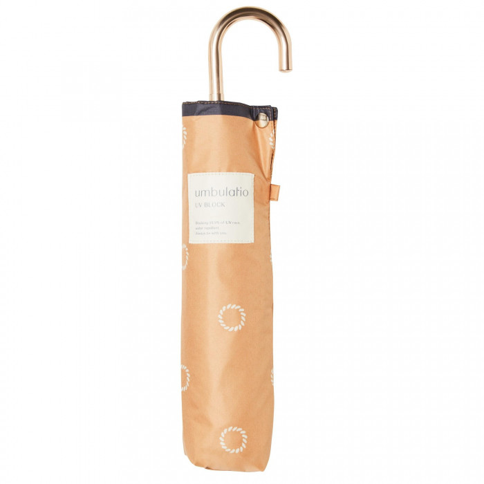 | UVカット率99.9%、遮光率99.99%、遮熱性能と撥水加工がされています。鞄や手にかけられる使いやすさにもこだわった、UVブロックの傘。ロープがドットになったさわやかなパターン。マリンルックな服装とも相性抜群です。 |