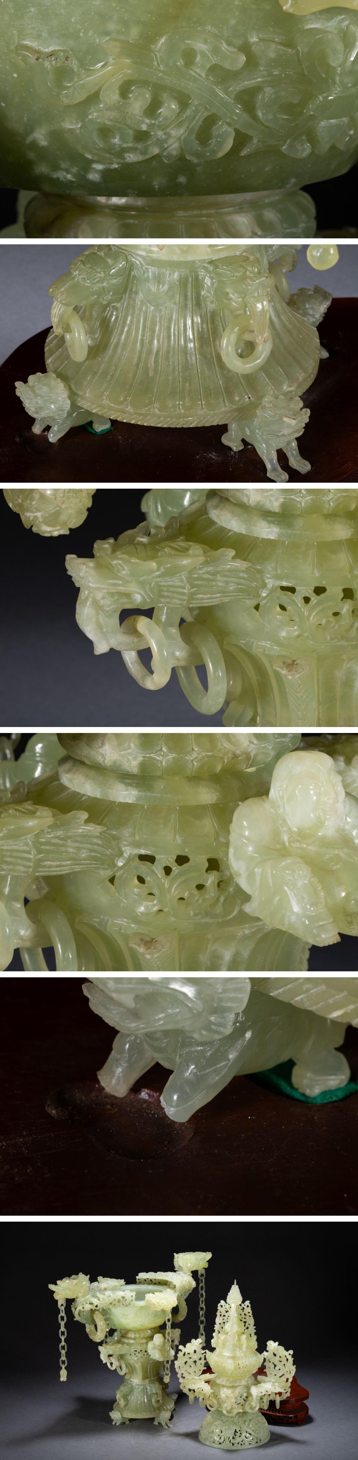 【清】関西某オークション購入 時代物 碧玉雕 巨大薫炉置物 極細工 古置物 古擺件 中国古美術7L6-601S5