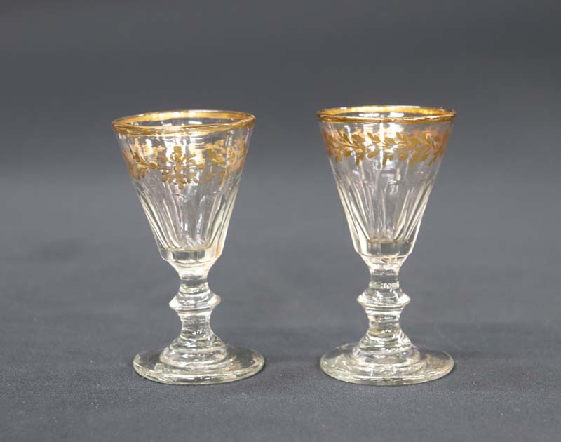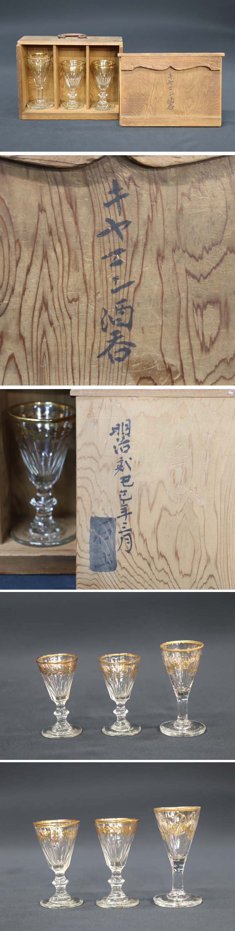古渡オランダで、明治初期に長崎にもたらされた金彩ガラス酒器3点。