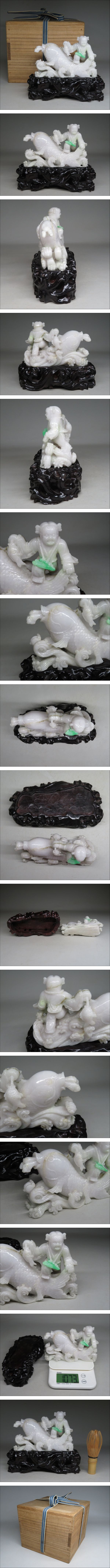 | 【東】清時代 玉石製 白玉翡翠 「連年有余」 置物 玉彫り 細密彫刻 中国美術/古美術・骨董品 | |||||||||