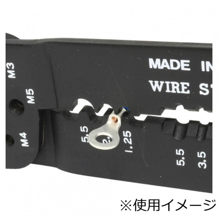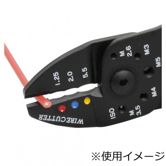 | 端子圧着、ネジ・ボルト切断、電線の切断・皮むきがこれ1丁でOK 黒い部分は、焼き付け塗装を施し被膜でおおわれているので、鉄が露出しておらずサビに強い! 対候性、耐油性もあります。 |