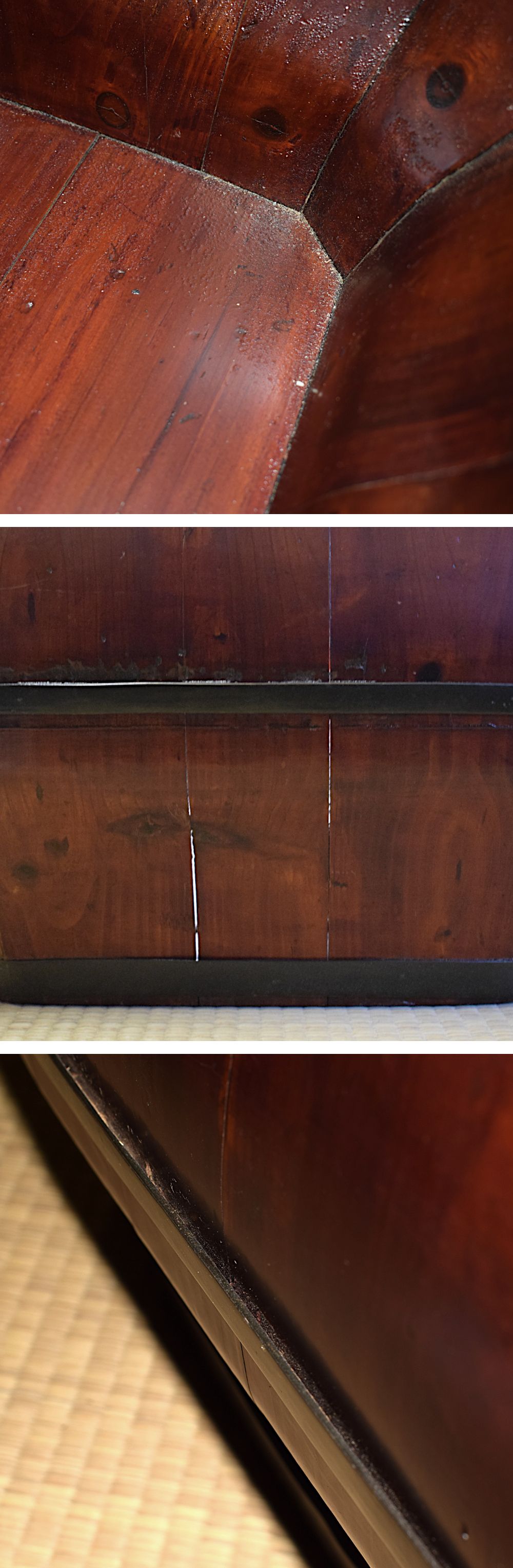 | 必ずご確認ください | ■ トラブルを避ける為、質問など分からない事などがございましたら 必ず入札前 にお願い致します。 ■ 画像の商品お渡しです。 ■ 画像のご確認をお願いいたします。 ■ 画像専用枠以外、欄外にも画像がございますので、必ずご確認ください。 ■ 蓋半分は固定です。 ■ 歪みの為、平らなところで揺れます。 ■ 留め金具は破損しています。 ■ 接合部分は隙間があります。 ■ 経年劣化、使用感があります。 ■ キズ・汚れ・歪み・罅等がございます。 (画像ではすべての部分を表示しきれておりません。) ■ 現状お渡しです。 ■ 状態の確認は行っておりますが遺漏が有る場合がございます。 お含みおき下さい。 ■ 説明文と掲載画像に齟齬がある場合は画像が優先となります。 ■ 寸法の誤差は出来るだけ出ないように注意していますので、多少の誤 差はご理解下さい。 ■ ライト・ストロボ撮影がございます。 ■ 撮影角度によりましてお色の濃淡が違って表現される場合がございます。 ■ 画像と実物では撮影の状態によりまして、ご覧頂いていますネット機器により、 色の表現が異なって見える場合も ございますのでご了承ください。 ■ ご入札後・ご落札後のキャンセルはお受けできません。ご了承ください。 ■ お送り先確定後、配送業者選別料金確定となります。 送料確定後にてもキャンセル出来ません。 ■ ご入金確認後、商品発送(集荷・持ち込み)まで、数日かかります商品です。 ■ 中古品につき神経質な方のご入札はお控えくださいます様お願いいたします。 ■ ノークレーム・ノーリターンでお願いいたします。 ■ 上記内容にご納得のうえでご入札をお願いいたします。 |