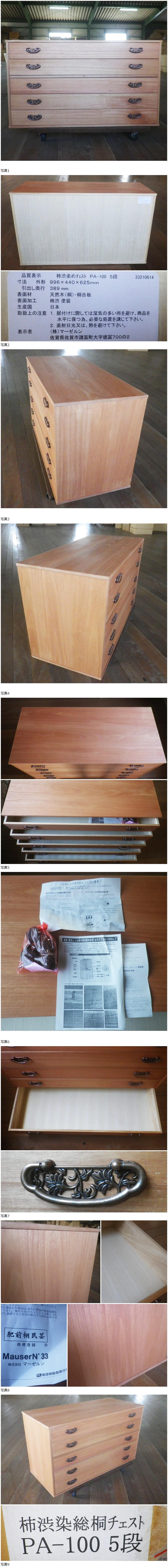| 【未使用】肥前桐民芸 柿渋染め 総桐チェスト 5段 PA-1005 桐タンス 幅996 隠しキャスター付 佐賀伝統工芸 着物収納 防湿 防虫 肥前民芸 |