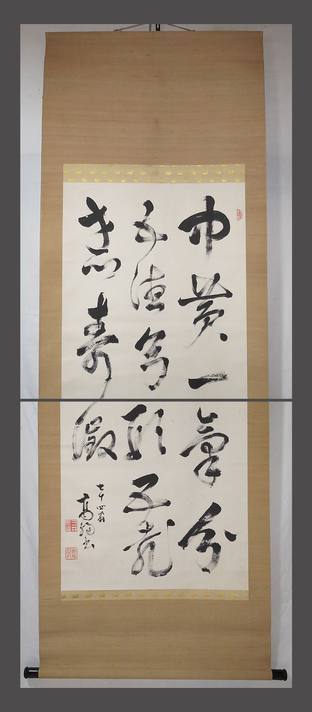 ・掛軸の軸先ですが、細心の注意を払って梱包しておりますが、 配送中の振動・気温・経年劣化等で外れてしまうことがあります。 軸先の外れは、破損ではございませんので、返品の対象にはなりません。 大変お手数ですが、お客様ご自身での修復をお願い致します。 ・添付写真の画像と説明文でご理解頂ける方、ご入札を宜しくお願い致します。 ・添付写真の画像は撮影の光度により、現物と若干の色合いの相違が生じる事があります。 ・添付写真の画像は受取完了のご連絡を頂いた後に速やかに消去しますのでご了承下さい。 ・土・日・祝日はお休みさせて頂きますので、商品発送は、月曜日以降になります。 ・祝日の場合は、翌日の平日以降の発送になります。 ・土・日・祝日は、メールの返信が若干遅れる事がございます。どうか、ご了承下さい。 ・時間的に余裕がない場合などでお答えが出来ない事も多々有ります。 ご不明な点は落札日前日までに早めにご質問下さい。 ・商品トラブルがあった場合は、直ちにご連絡下さい。 お取引に付きましては迅速・丁寧に対応させて頂きます。 ・落札後、できるだけ2日以内に連絡(返信)を頂ける方、 5日以内にご入金できる方の御入札を御願い致します。 ・新規の方や評価の総評が悪い方は当方の判断にて、入札取り消しを行う場合がございます。 ・お取引に付きましては、迅速、丁寧に対応致しますのでどうぞ、宜しくお願い致します。 ・古美術品や古物や古書画の出品が多いため、神経質な方がご入札される場合は、 ご自身が納得の行く価格でご入札ください。 ・万一、ヤフーのシステム障害により、公正なオークションができなかったまま終了し、 落札者様にご落札された場合は、当方より取引ナビで取引中止のご連絡を致します。 その時は、どうか、ご了承をお願い致します。 ・終了当日・直前の入札の取り消しは、 トラブルの原因となりますのでご遠慮お願い致します。 ・入札後の取り消し(キャンセル)は行っておりません。 ・落札後のキャンセル・返品はお断りしてます。 入札前によくご確認頂き、間違いのないようにご注意下さい。 |