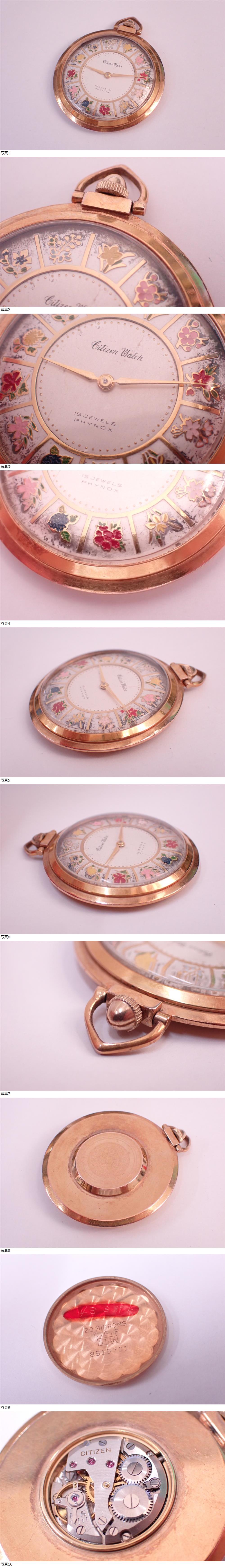 | 稼働品 希少品 懐中時計 Citizen Watch シチズンウォッチ 季節の花 七宝焼 フラワー ダイヤル 手巻き 15石 ゴールド P03092 | ||||