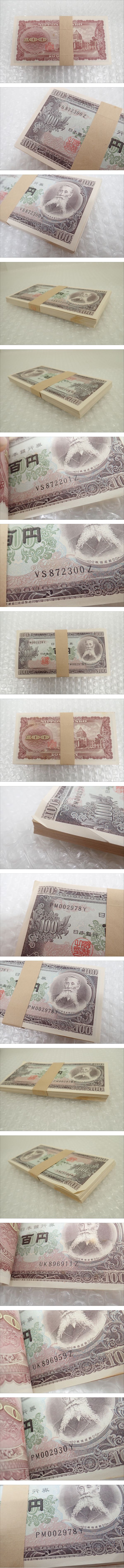K603-60-M 帯付き・未使用・ピン札 板垣退助 百円札 旧紙幣 100円札(日本銀行券B号)連番  300枚 額面30000円  [浏览原始页面]